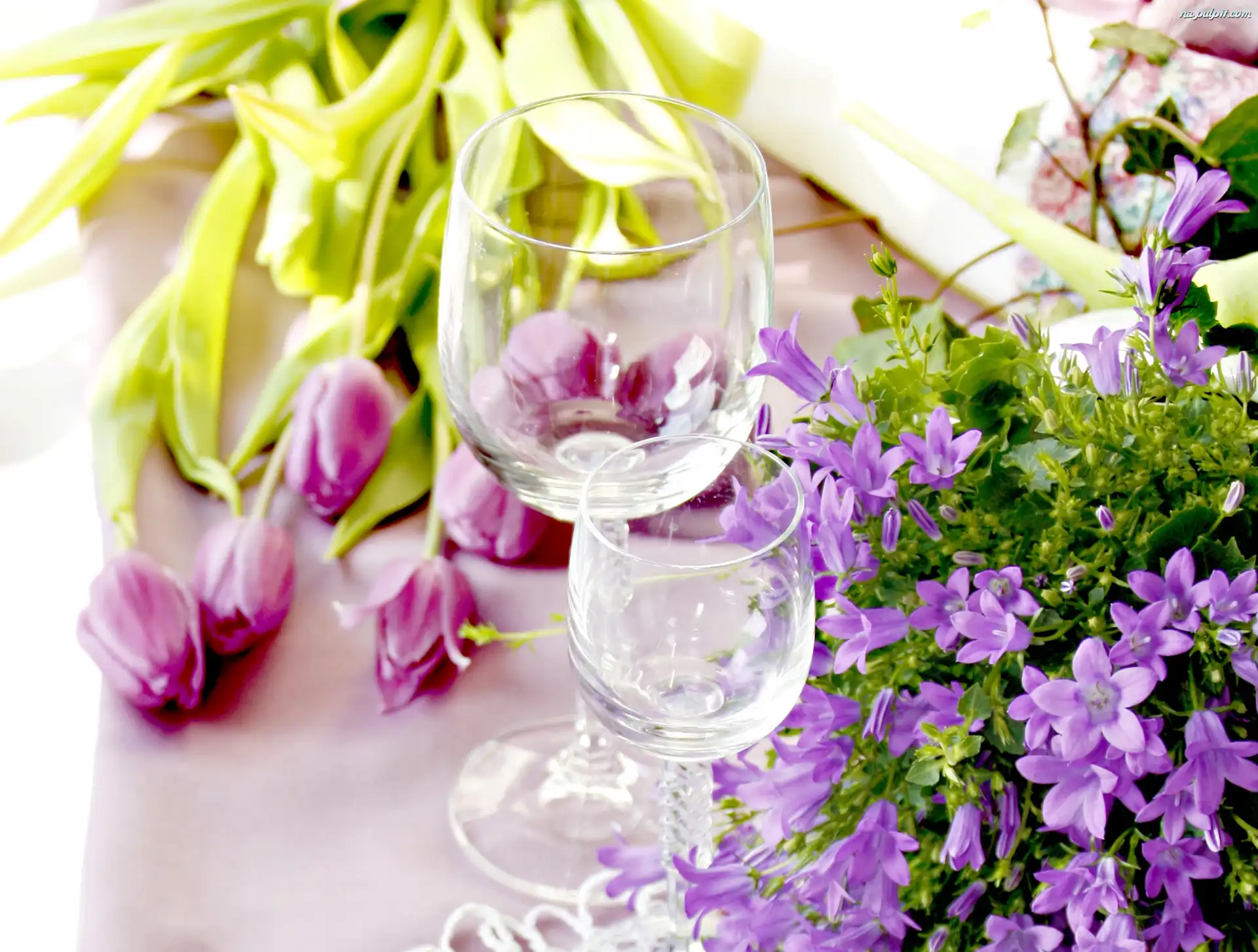Kieliszki, Kwiaty, Fioletowe, Tulipany Na Pulpit