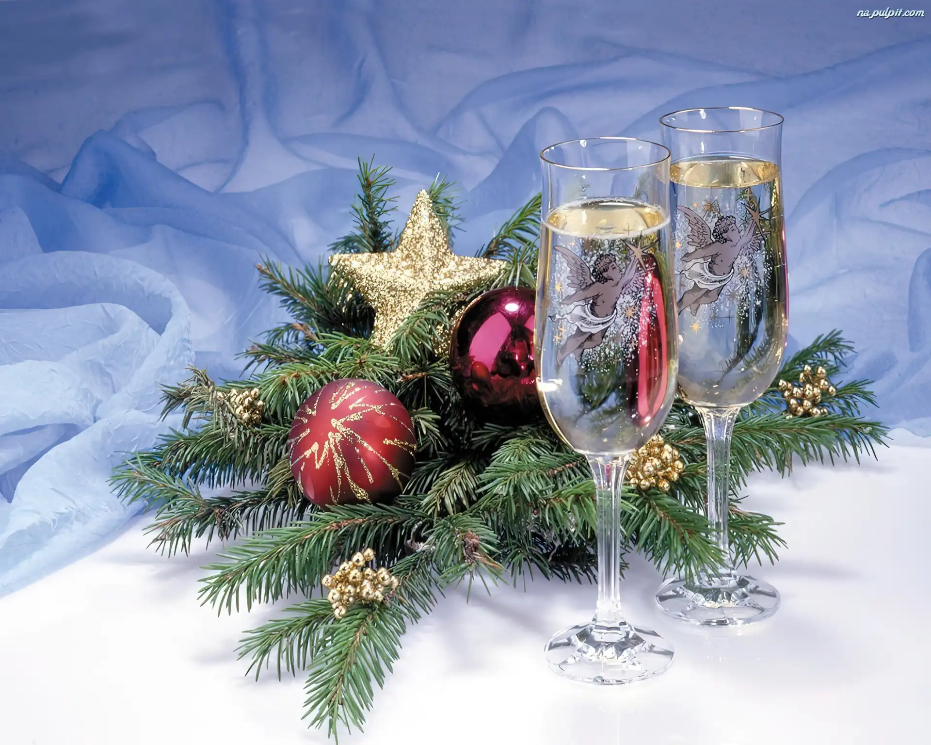 Kieliszki, Gwiazdka, Gałązki, Stroik, Bombki