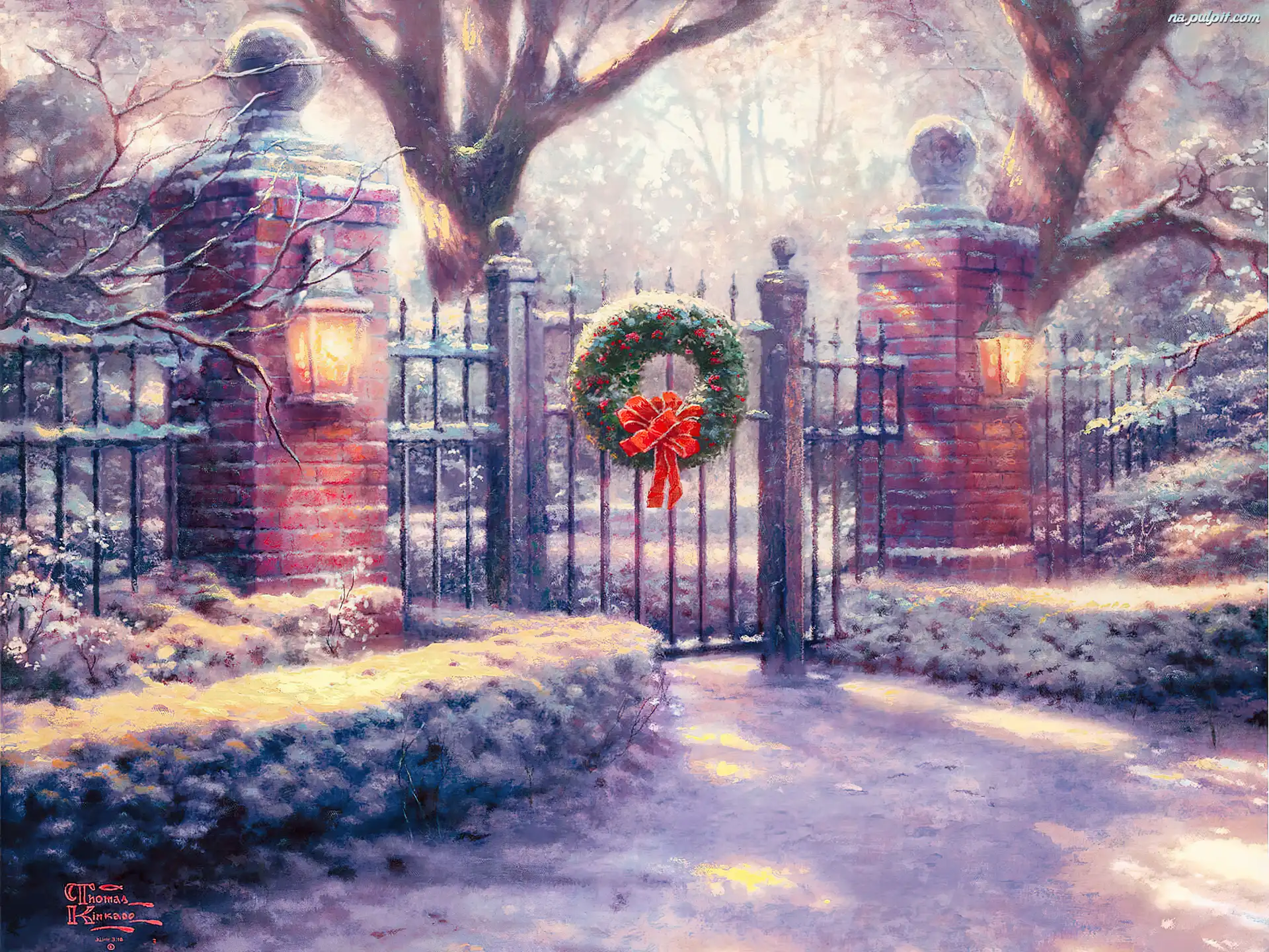 Kinkade, Bożonarodzeniowy, Wieniec, Brama, Thomas