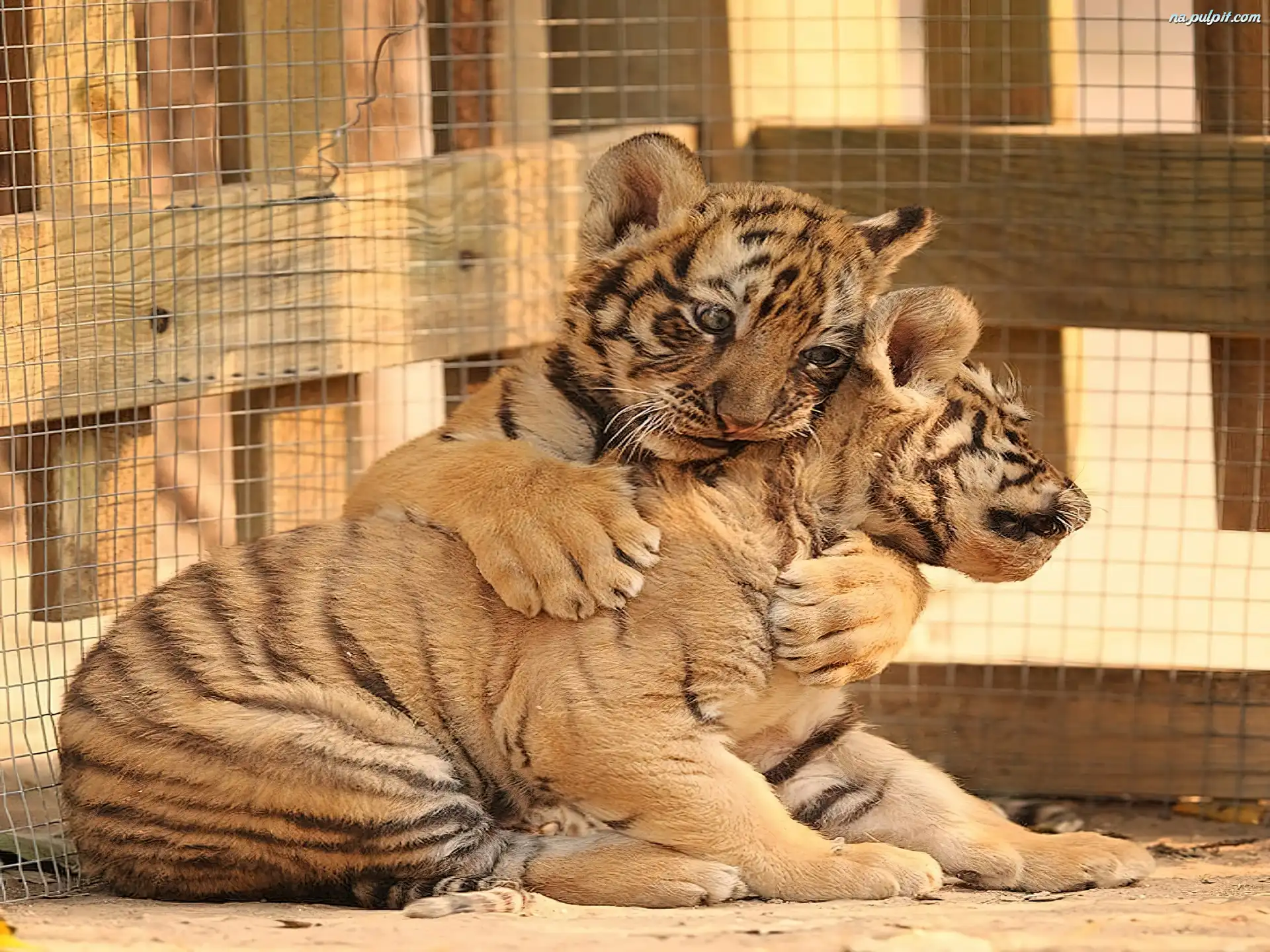 Klatka, Przytulone, Małe, Dwa, Tygryski Na Pulpit