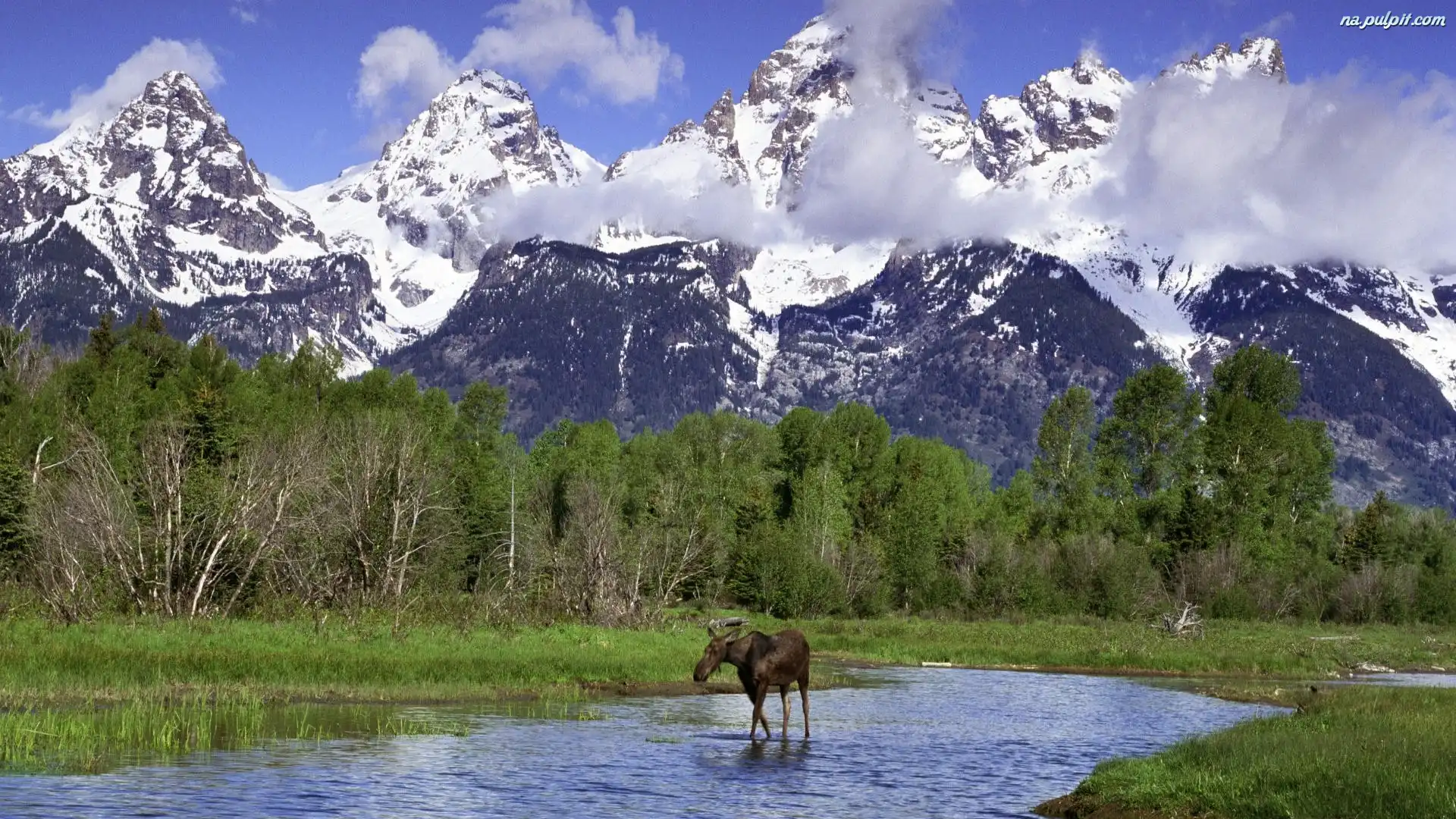Klępa, Rzeka, Drzewa, Góry, Łoś Na Pulpit