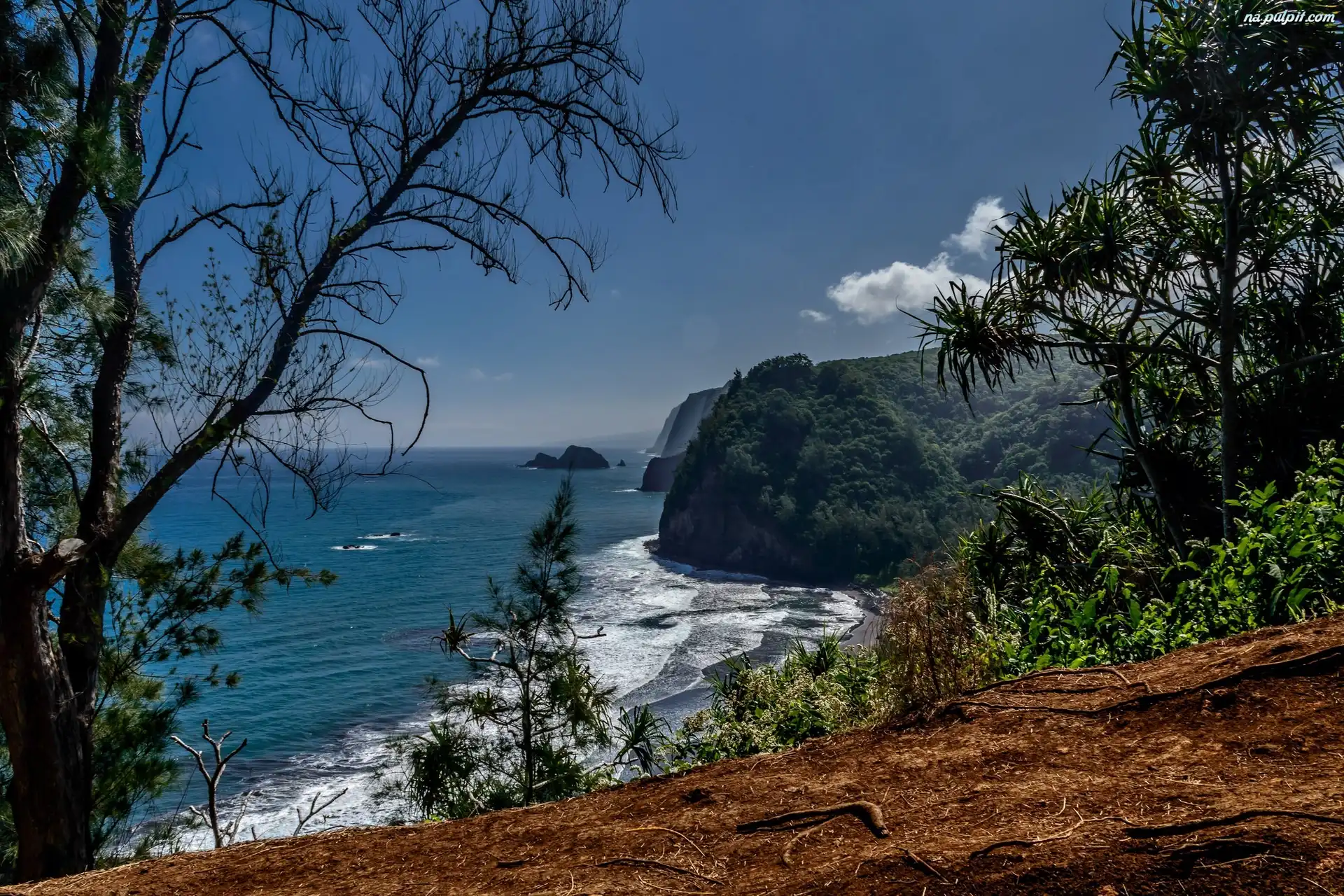 Klif, Wybrzeże, Morze, Drzewa Na Pulpit