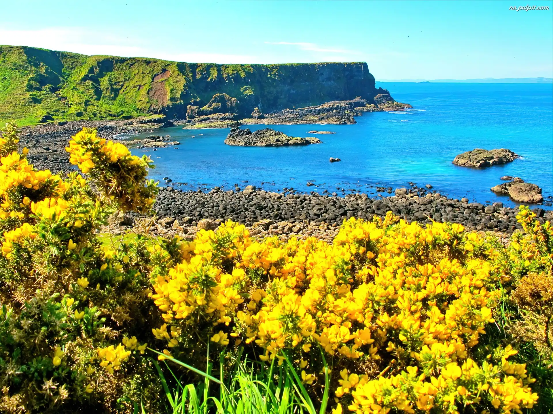 Klif, Kwiaty, Żółte, Ocean Na Pulpit