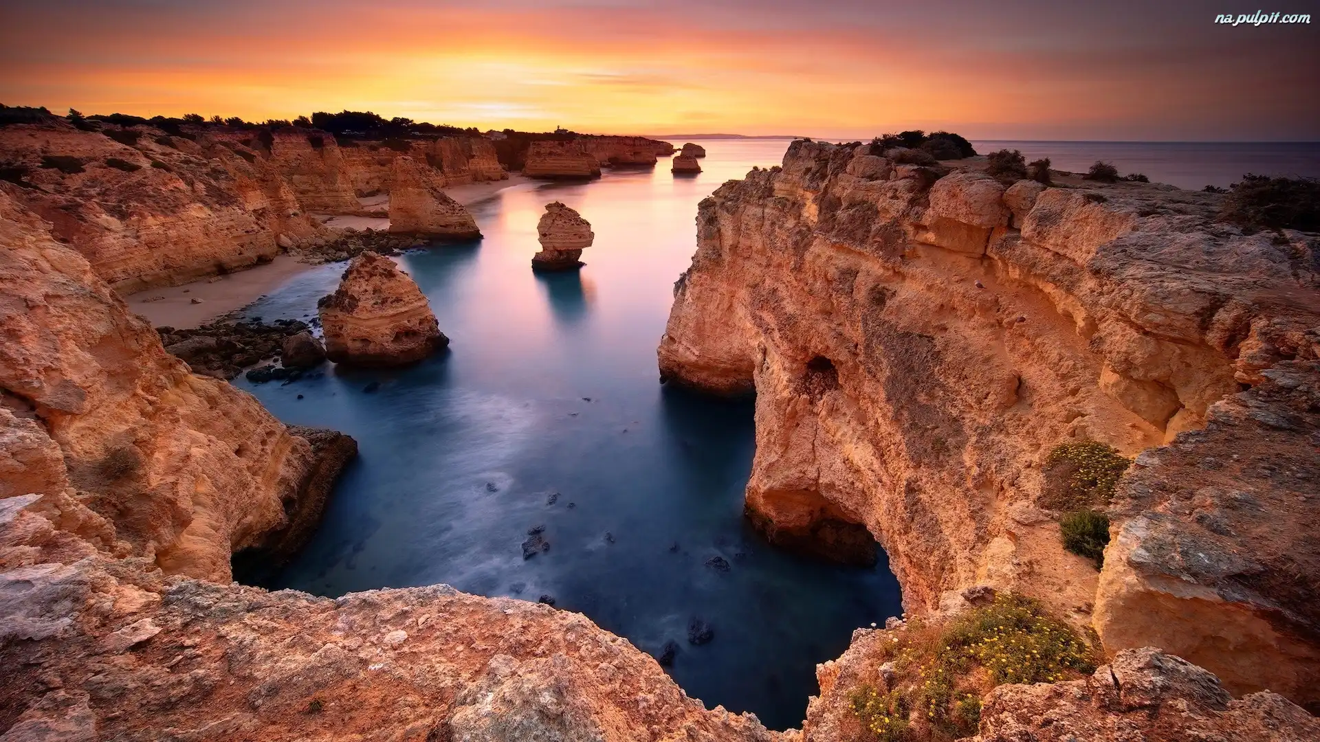 Klify, Wybrzeże, Morze, Zachód słońca, Skały Na Pulpit