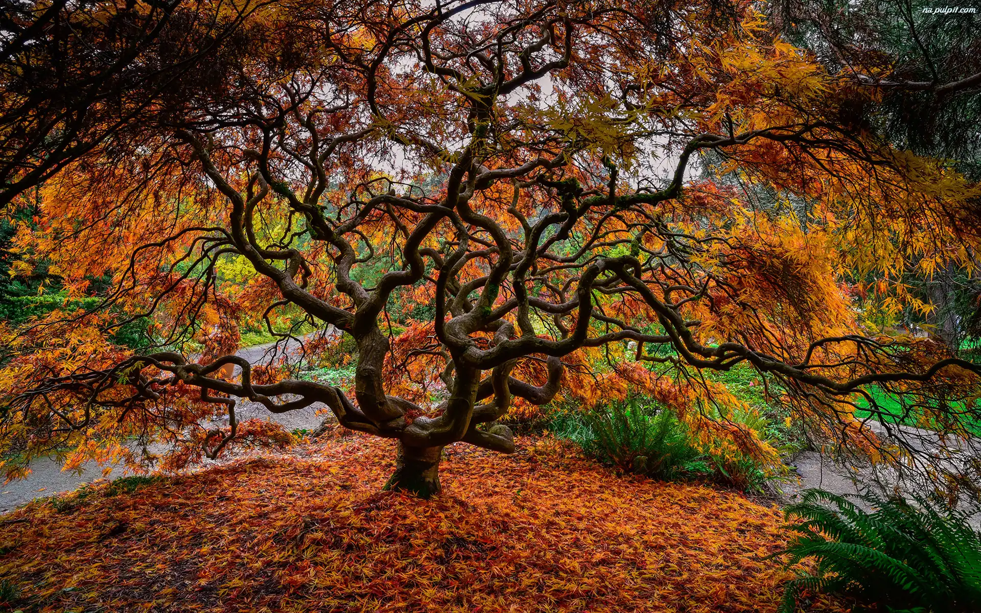 Klon japoński, Jesień, Park, Drzewo Na Pulpit