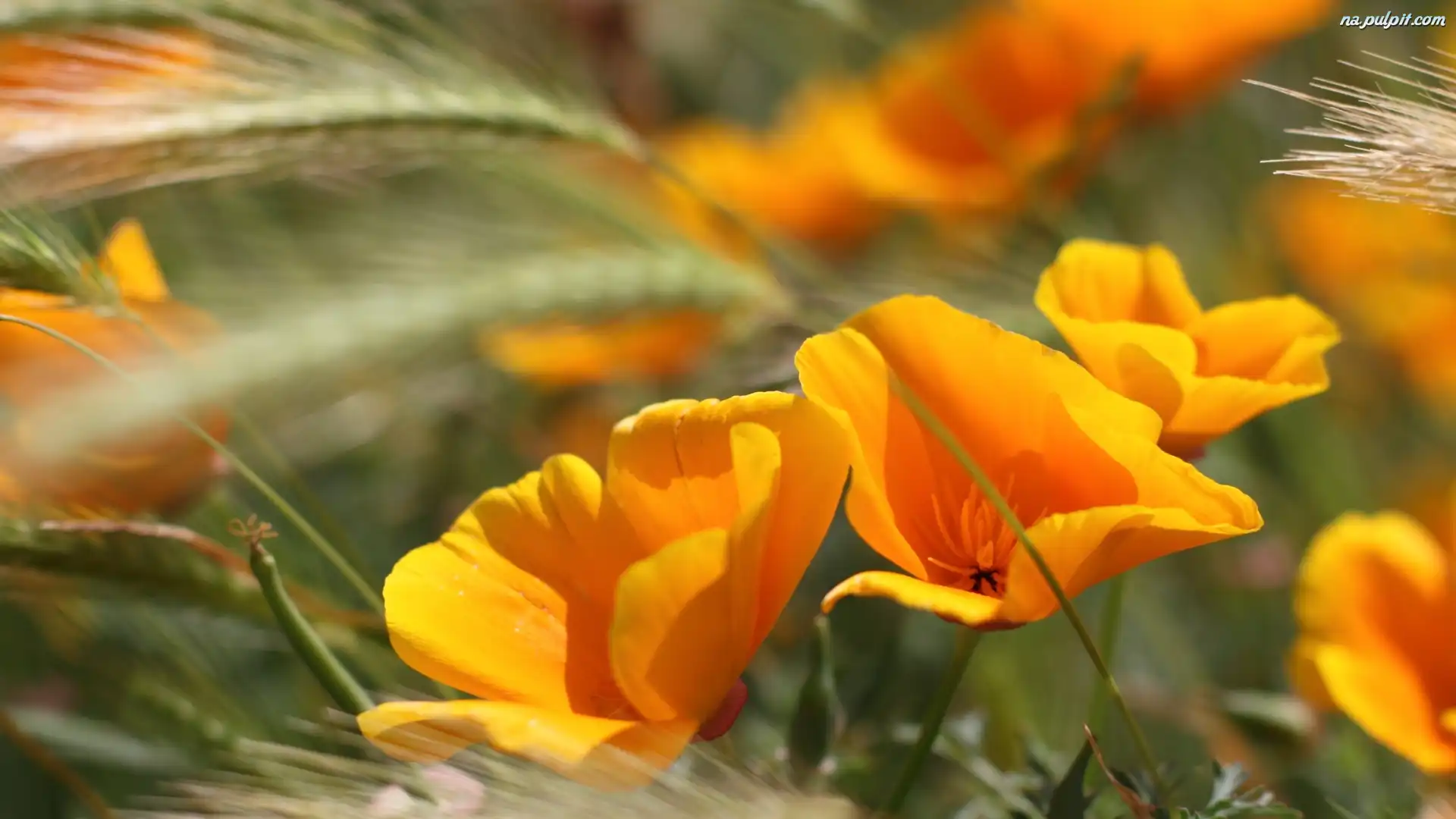 Kłosy, Maki, Żółte, Zboże Na Pulpit
