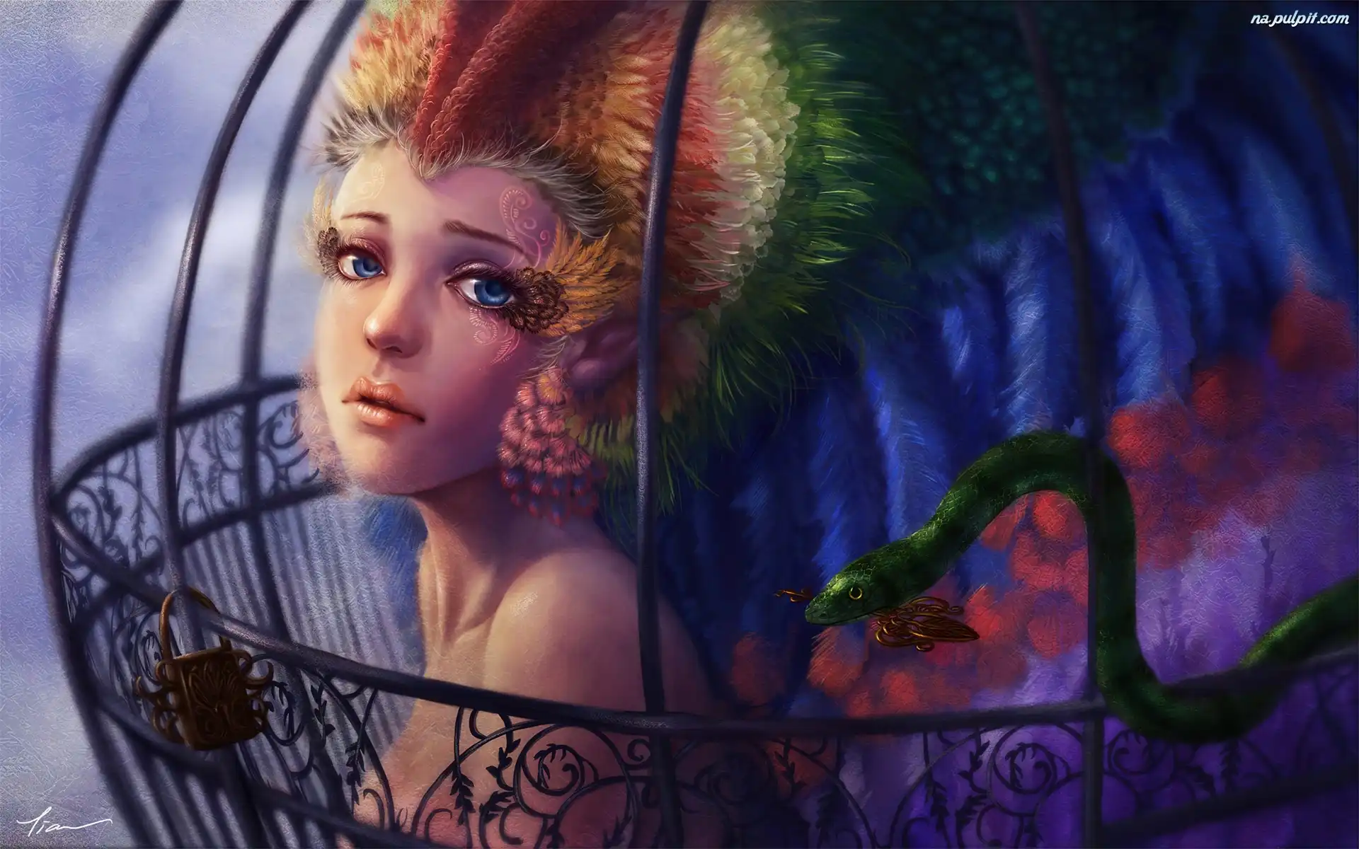 Klucz, Klatka, Ptak, Dziewczyna, Wąż