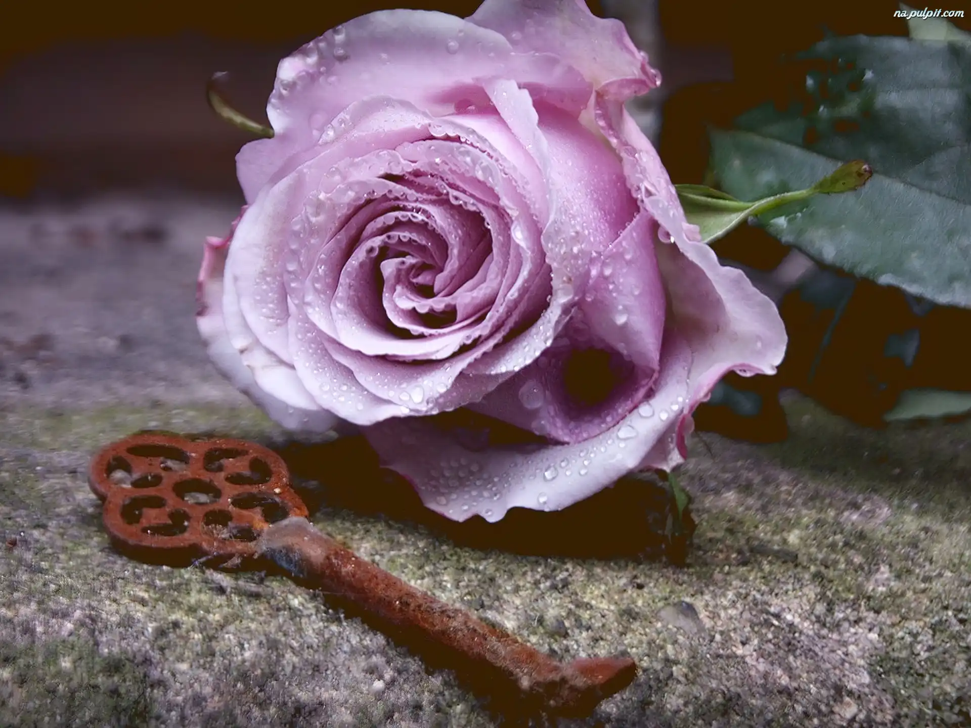 Klucz, Krople, Róża, Fioletowa, Rosy Na Pulpit