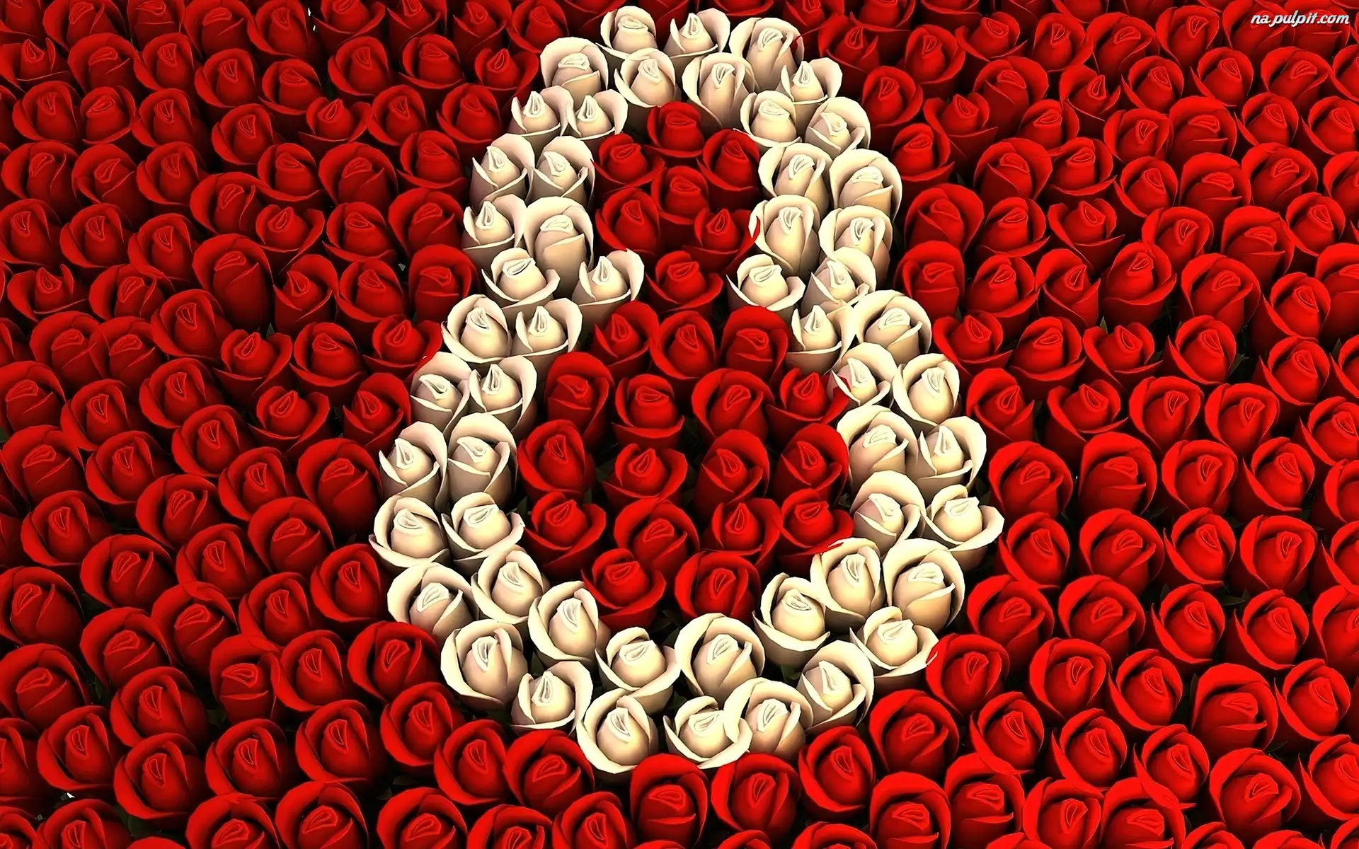 Kobiet, Róże, Czerwone, Biało, Dzień Na Pulpit