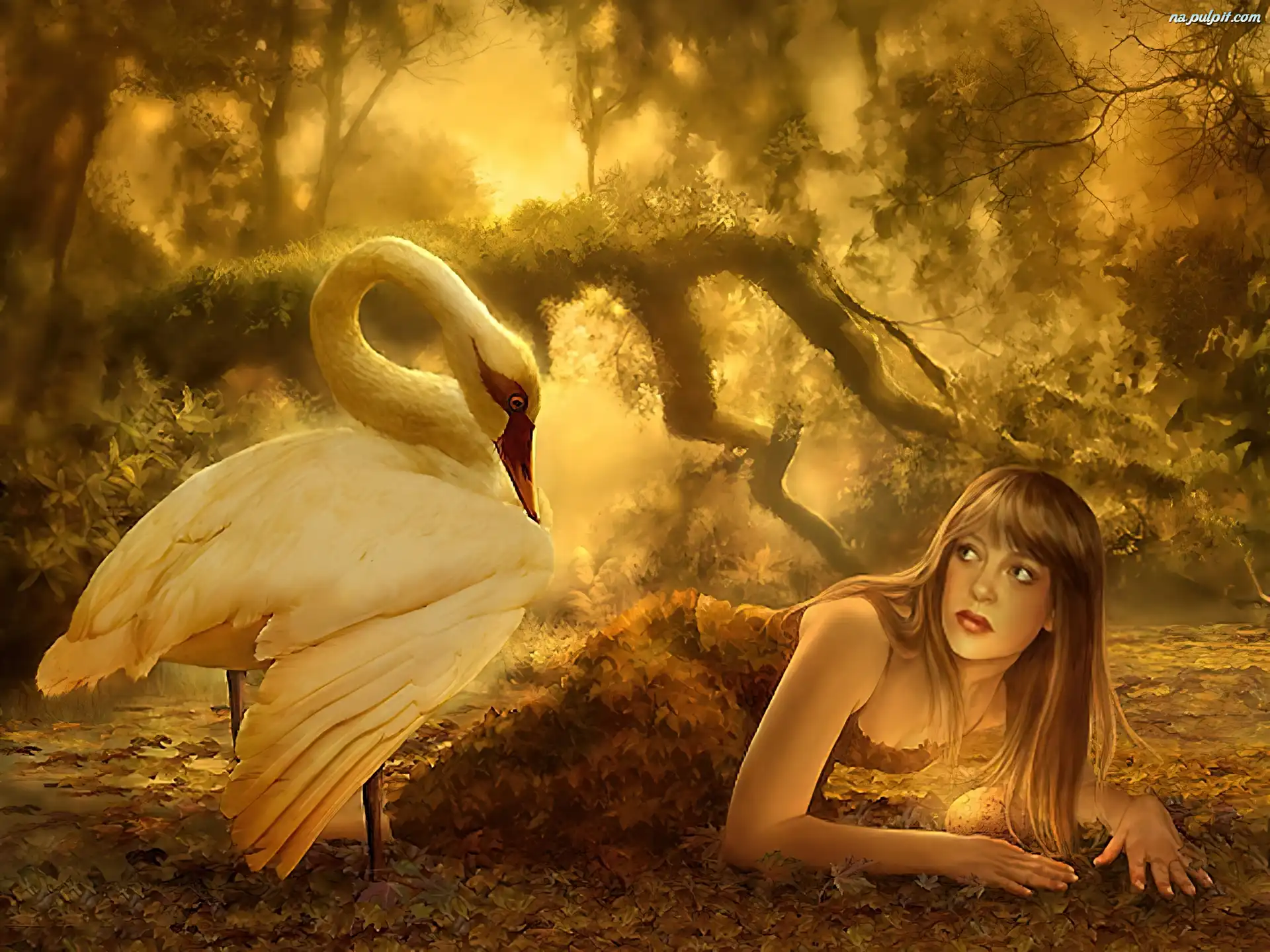 Łabędź, Kobieta, Jesień Na Pulpit