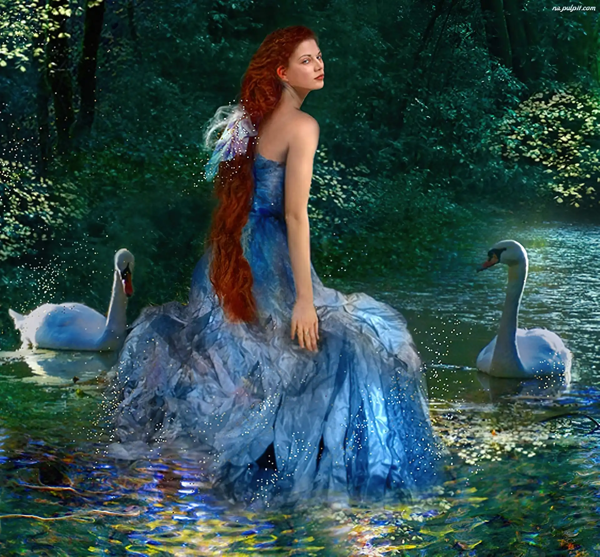 Łabędzie, Kobieta, Rzeka Na Pulpit