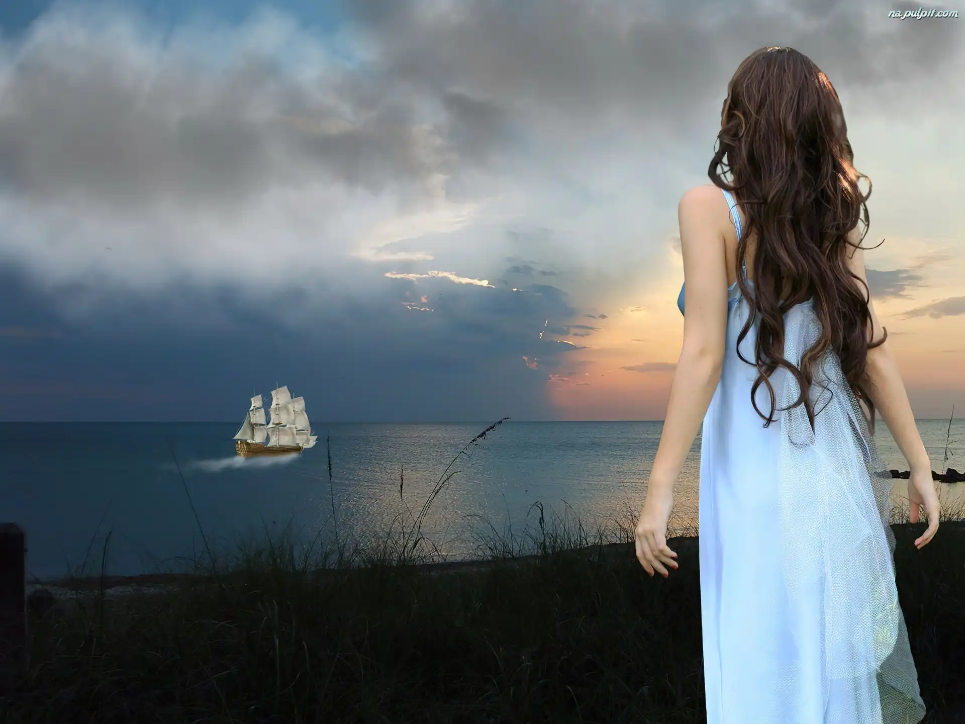 Żaglowiec, Kobieta, Woda Na Pulpit