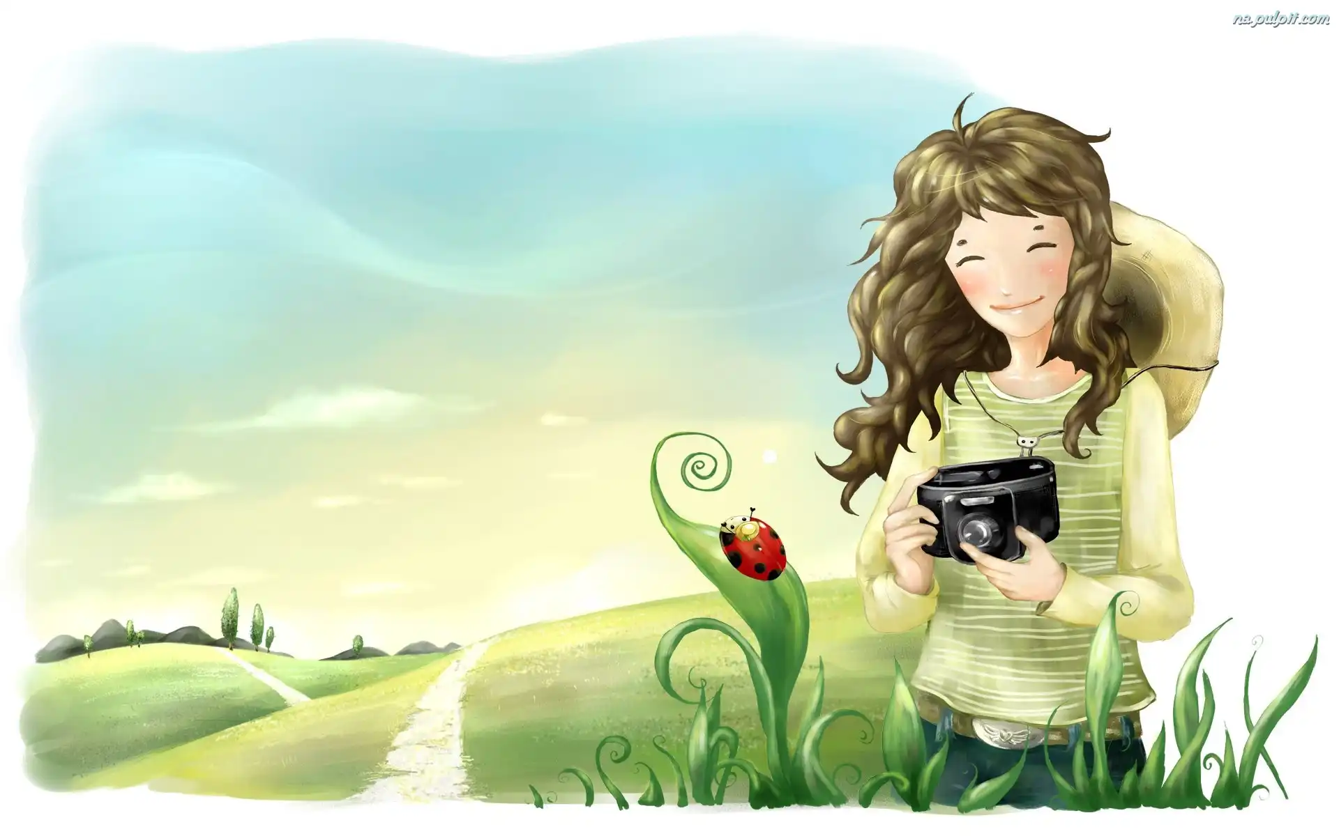 Łąka, Kobieta, Aparat