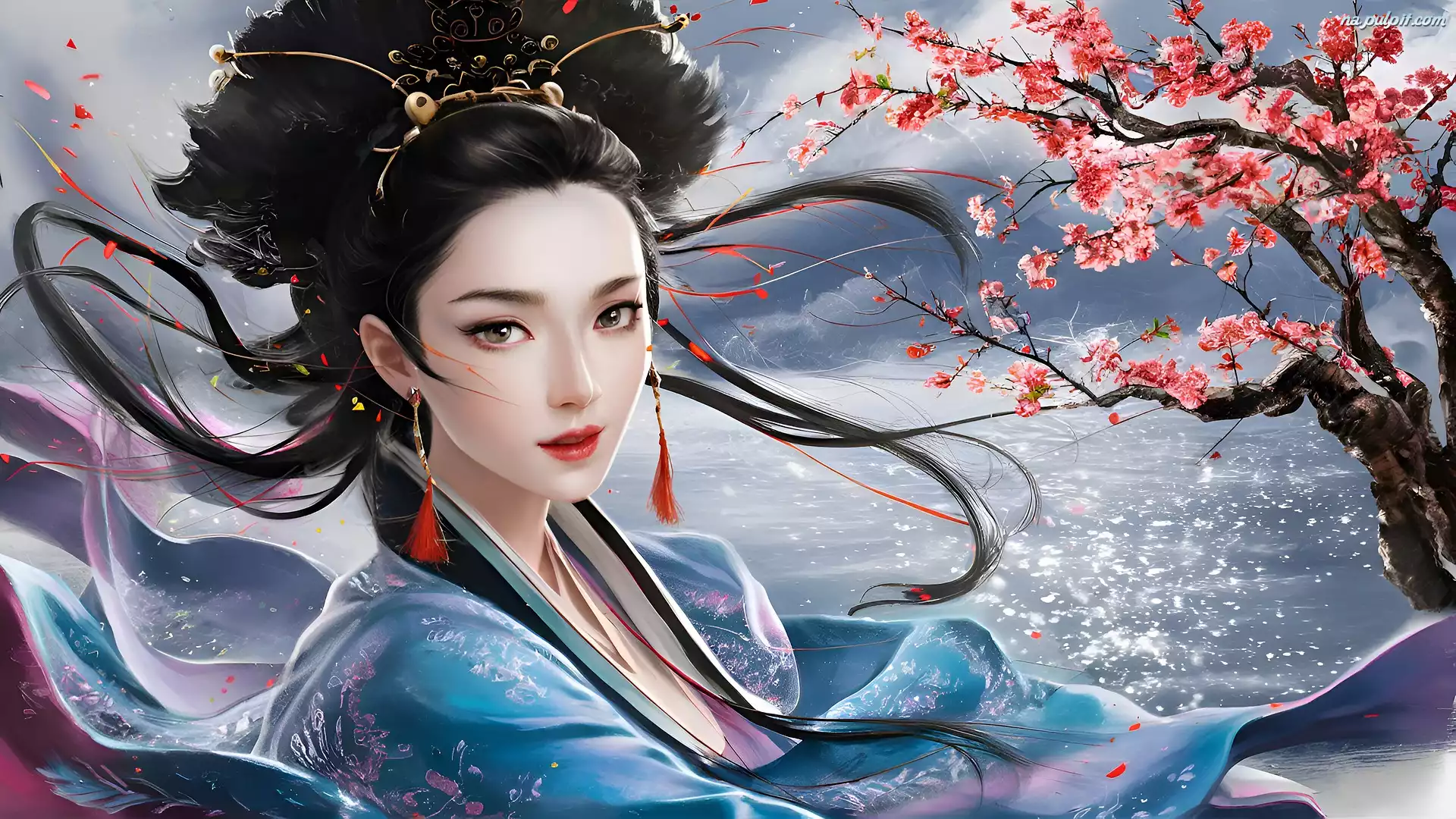 Woda, Kobieta, Azjatka, Grafika, Drzewo Na Pulpit