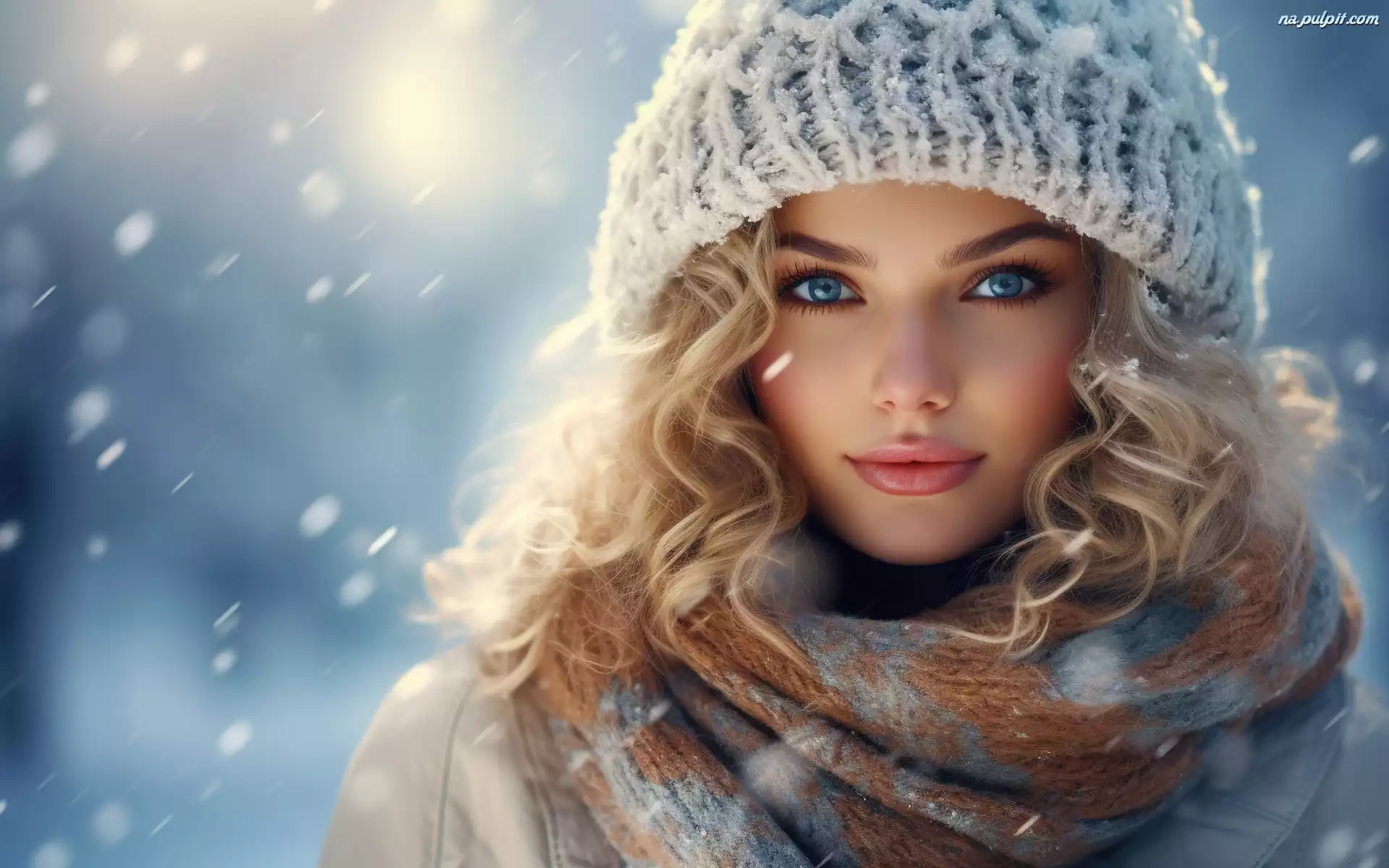 Szal, Kobieta, Blondynka, Åšnieg, Czapka Na Pulpit