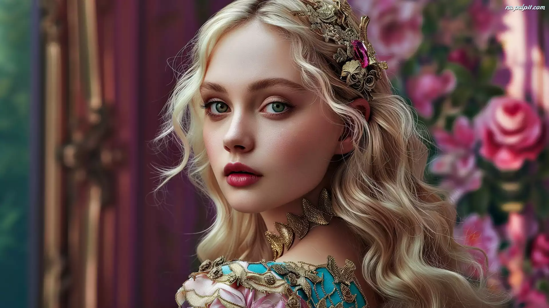 Ozdobna, Kobieta, Blondynka, Spinka, Makijaż