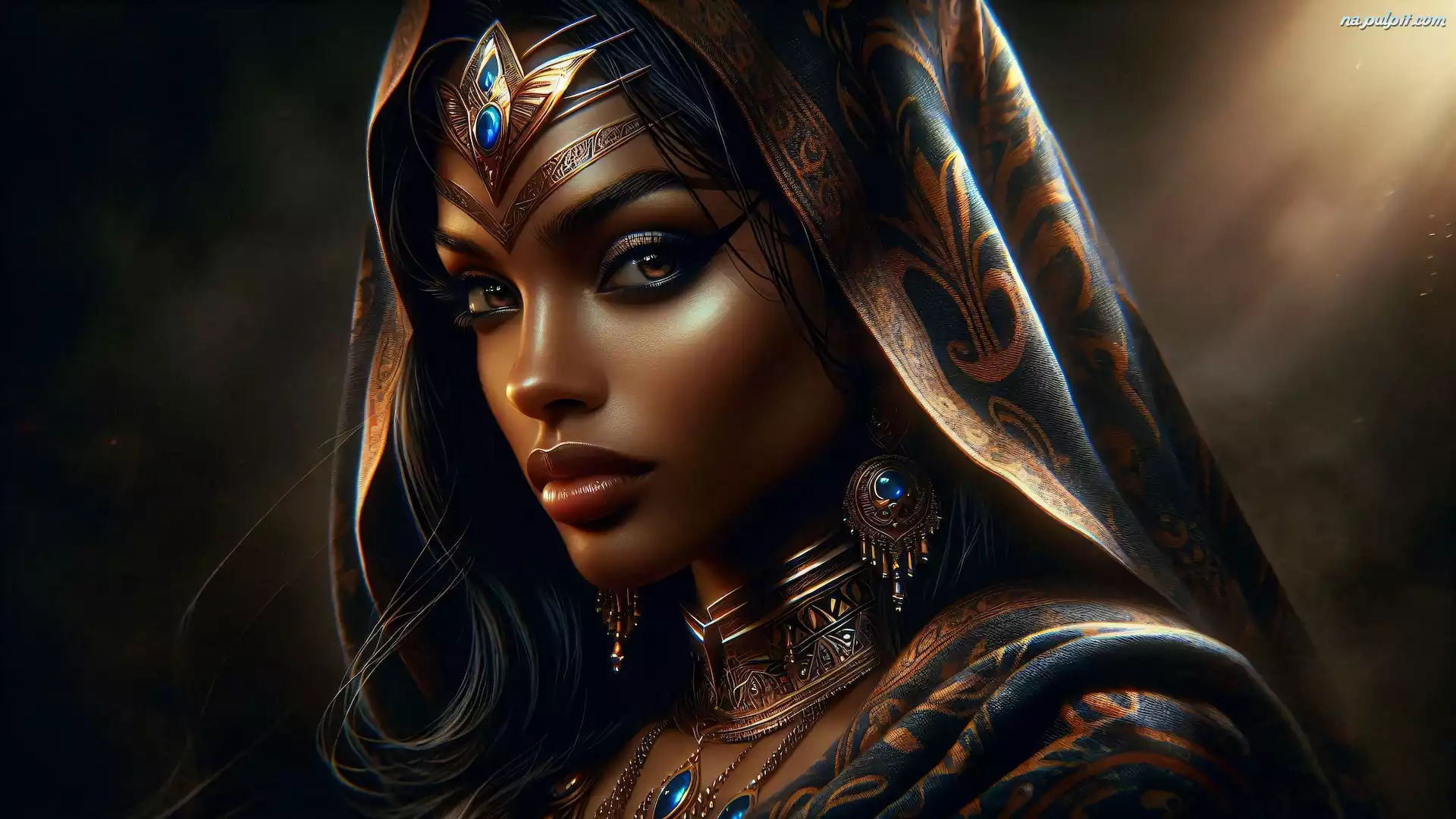 Biżuteria, Kobieta, Ciemnoskóra, Grafika, Chusta