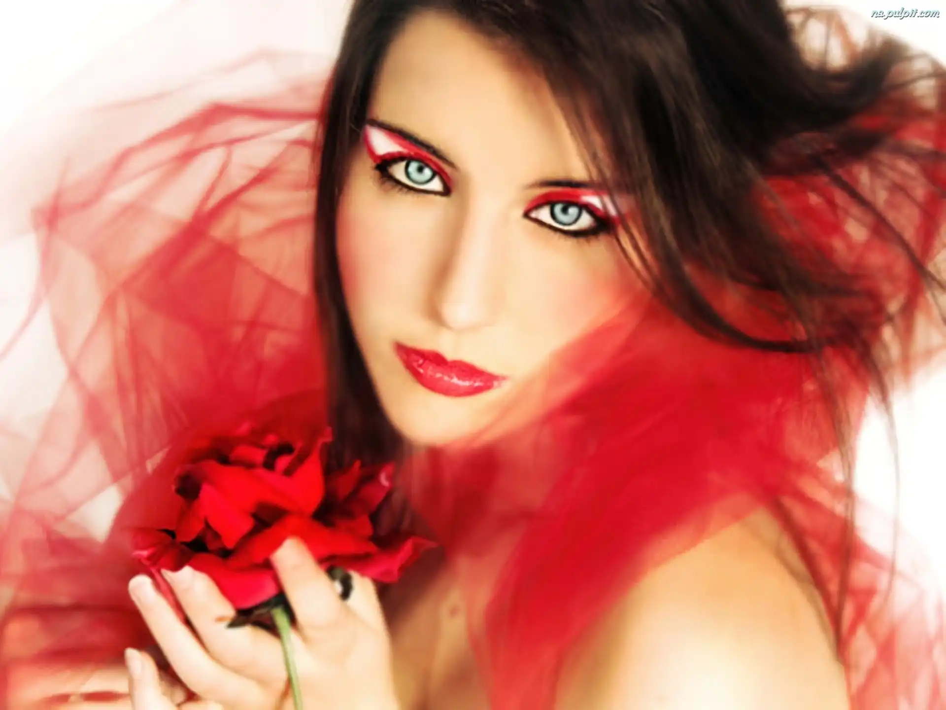 Czerwień, Kobieta, Makijaż Na Pulpit