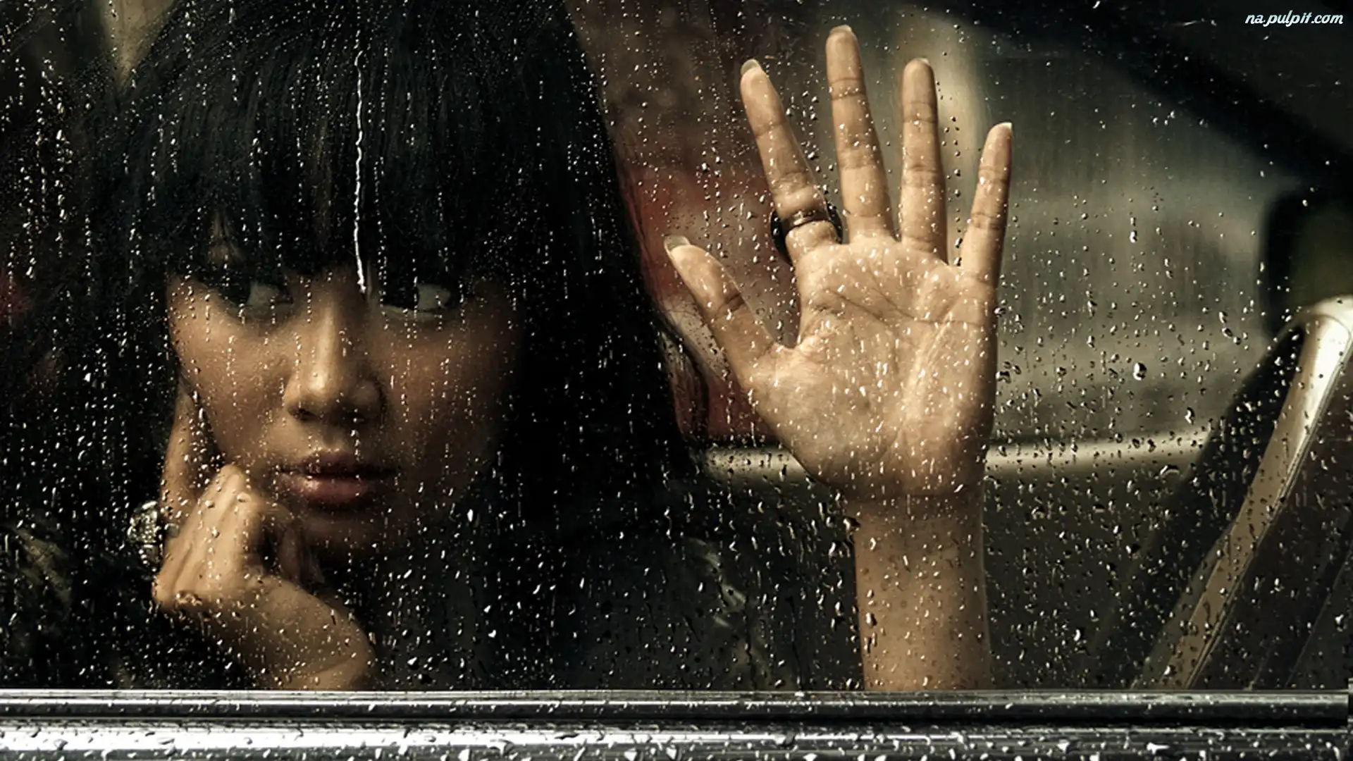 Deszcz, Kobieta, Szyba