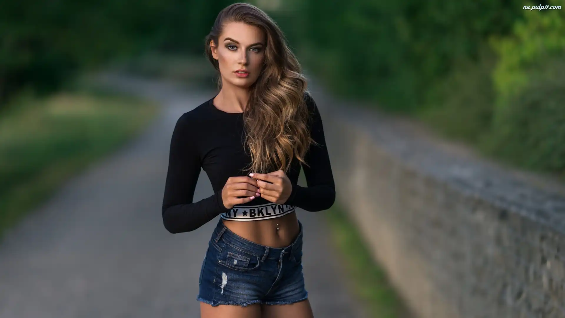 Kobieta, Alejka, Murek, Sylwetka, Długowłosa, Piercing