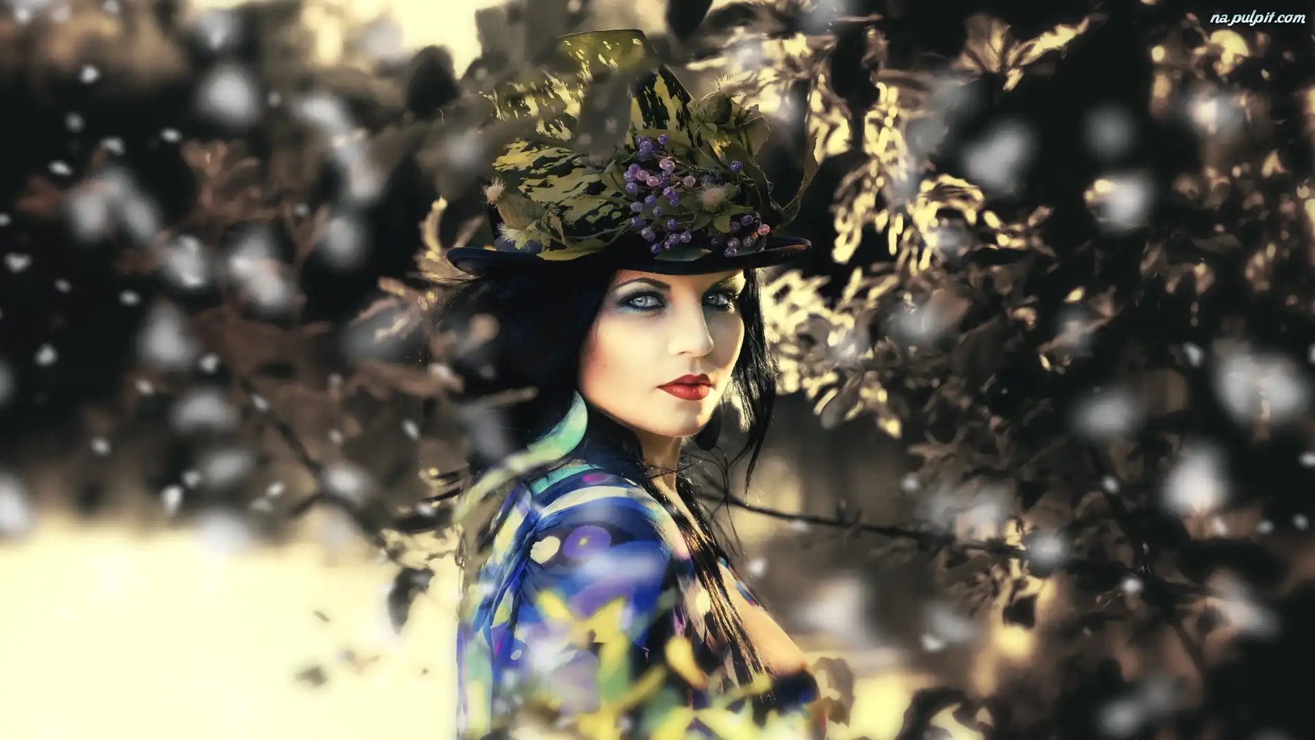 Gałęzie, Kobieta, Kapelusz Na Pulpit