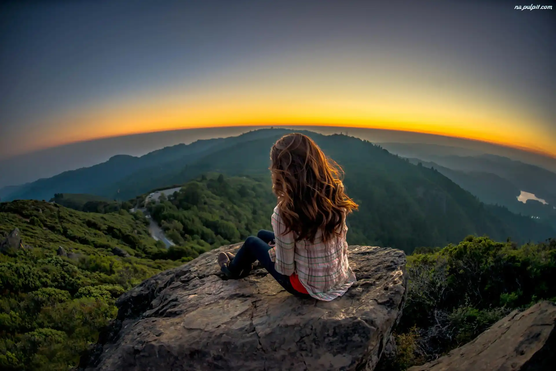 Kobieta, Wschod, Gory, Slonca Na Pulpit