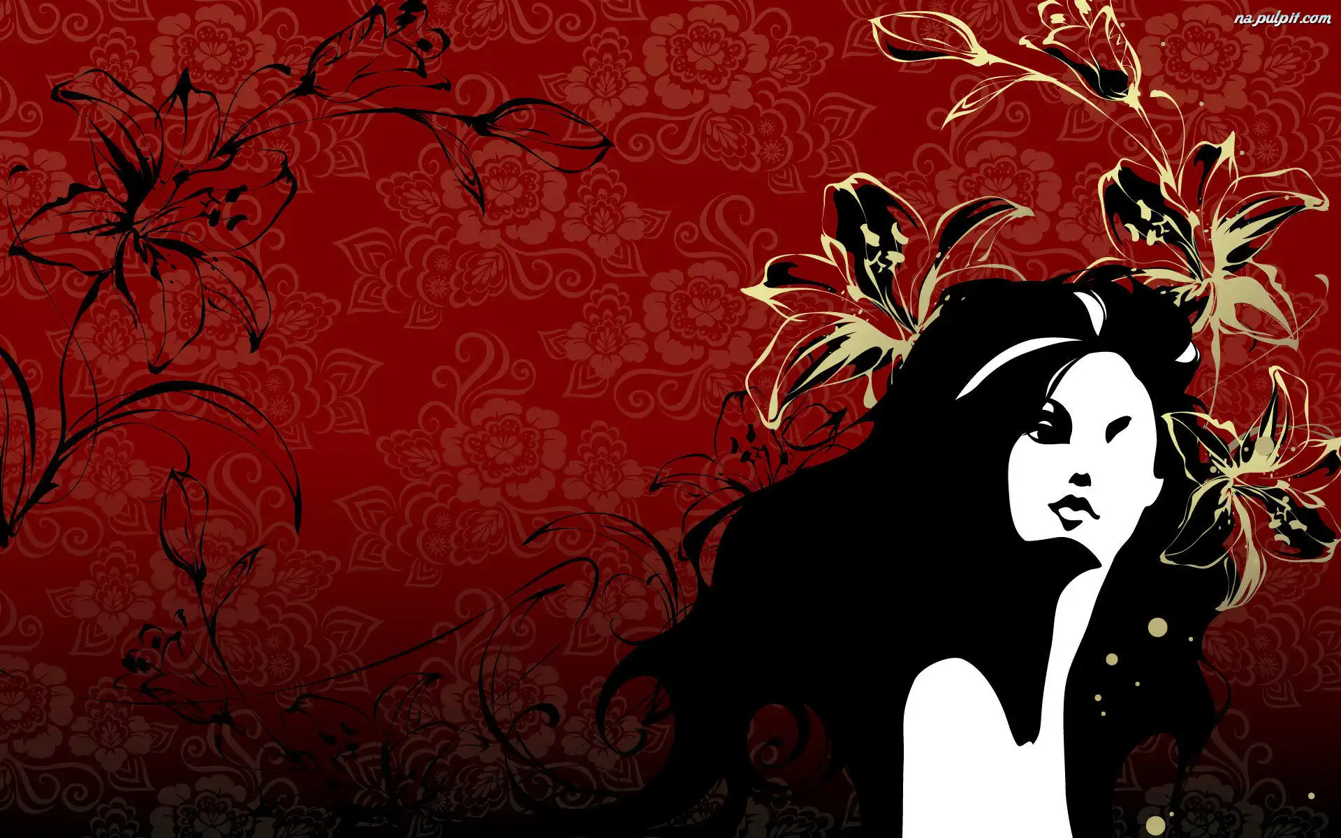 Grafika, Kobieta, Kwiaty
