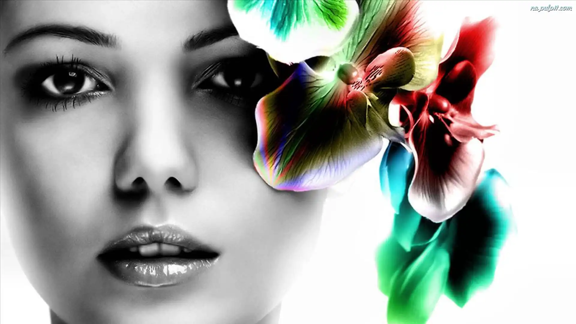 Grafika, Kobieta, Kwiaty