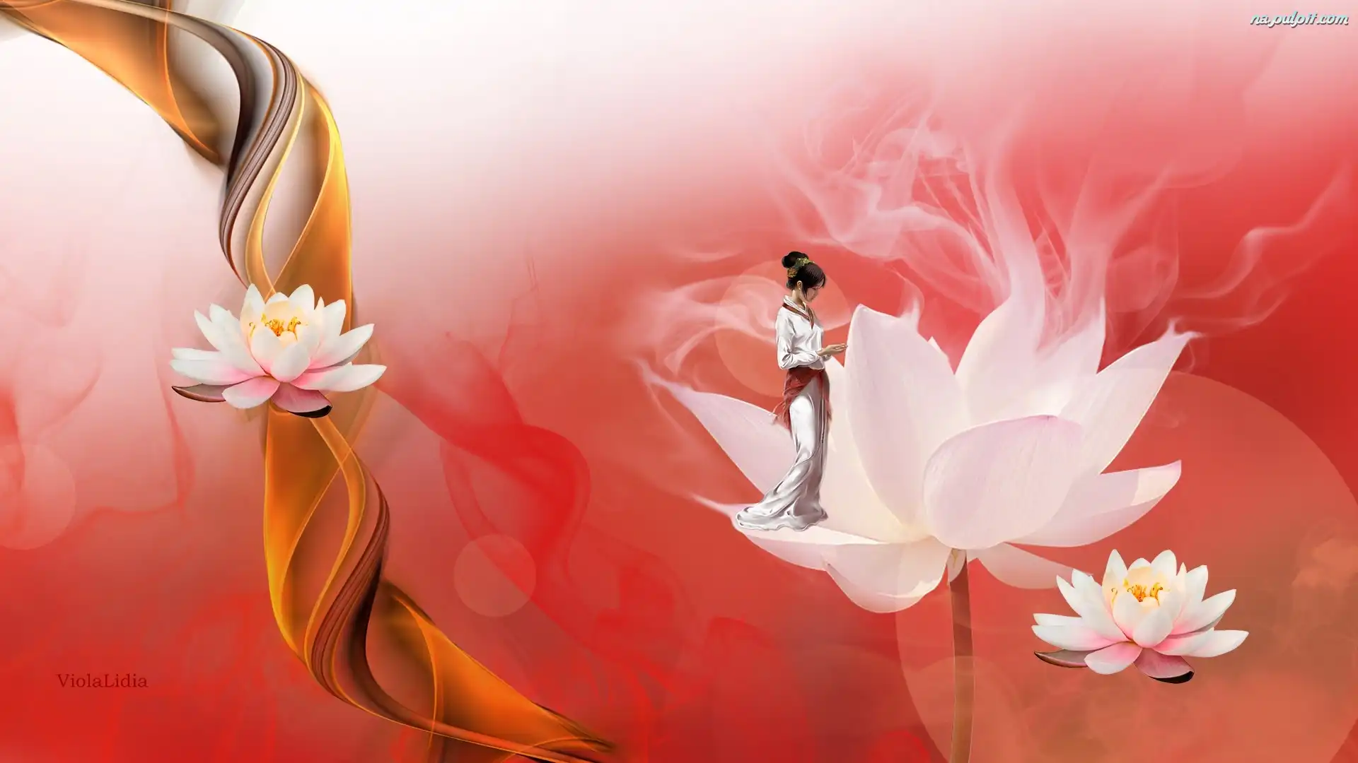 Kobieta, Kwiaty, Grafika, Lotosy Na Pulpit