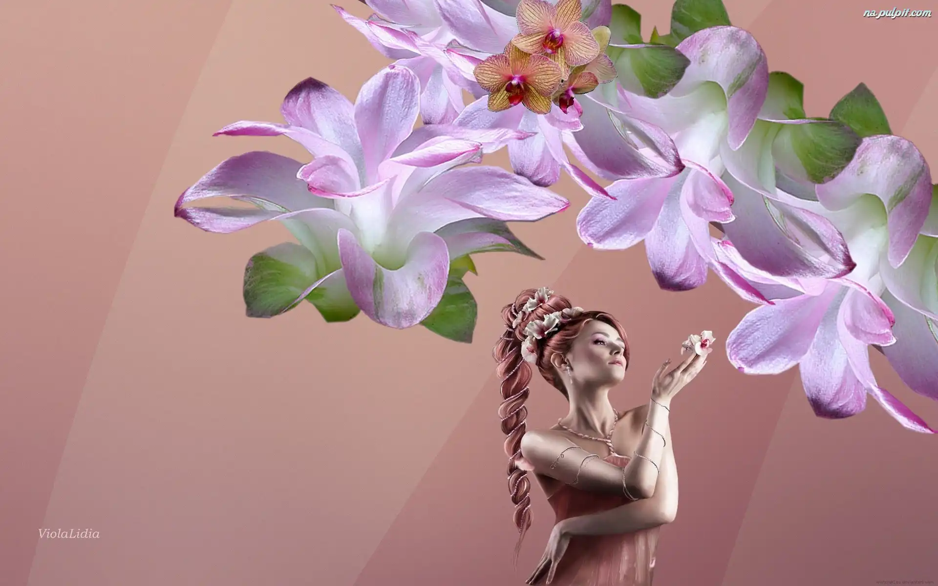 Kobieta, Kwiaty, Grafika, Storczyki Na Pulpit
