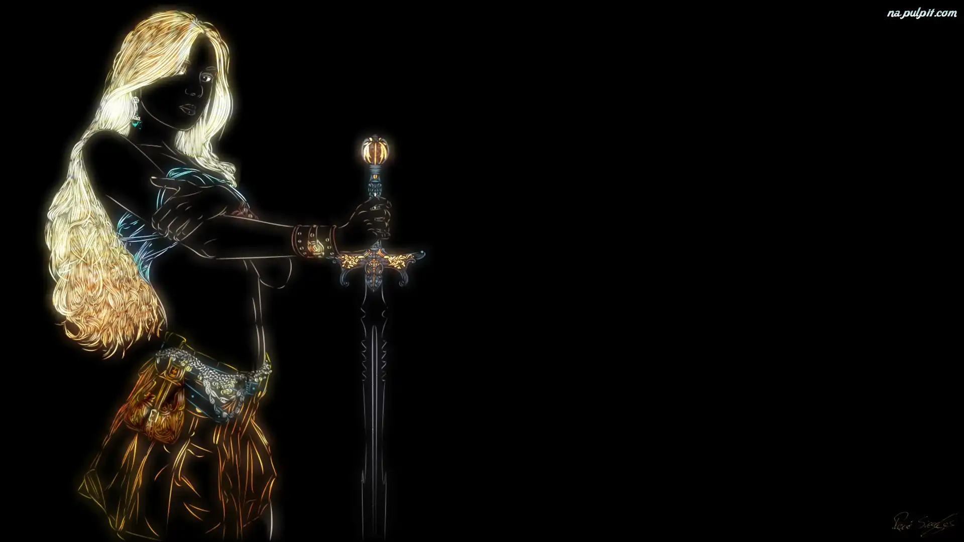 Grafika, Kobieta, Miecz