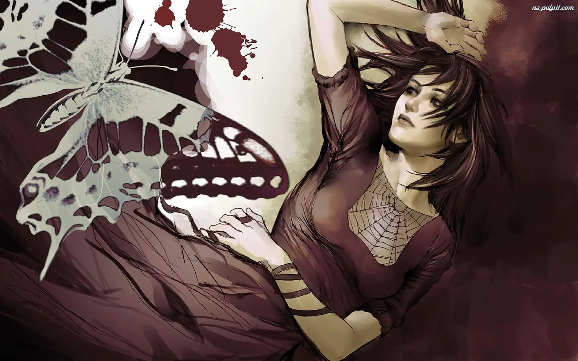 Grafika, Kobieta, Motyl