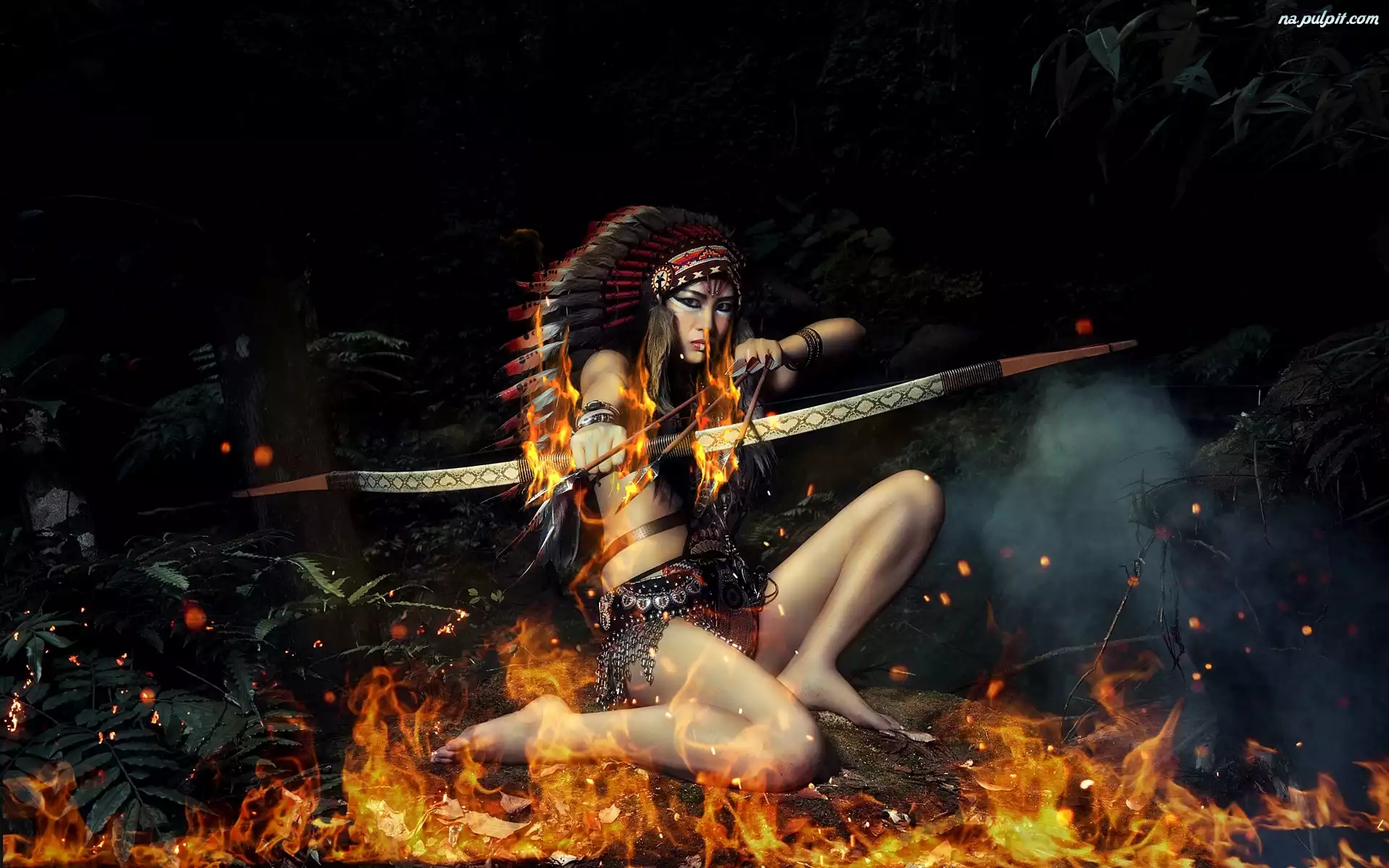 Łuk, Indianka, Kobieta, Ogień Na Pulpit