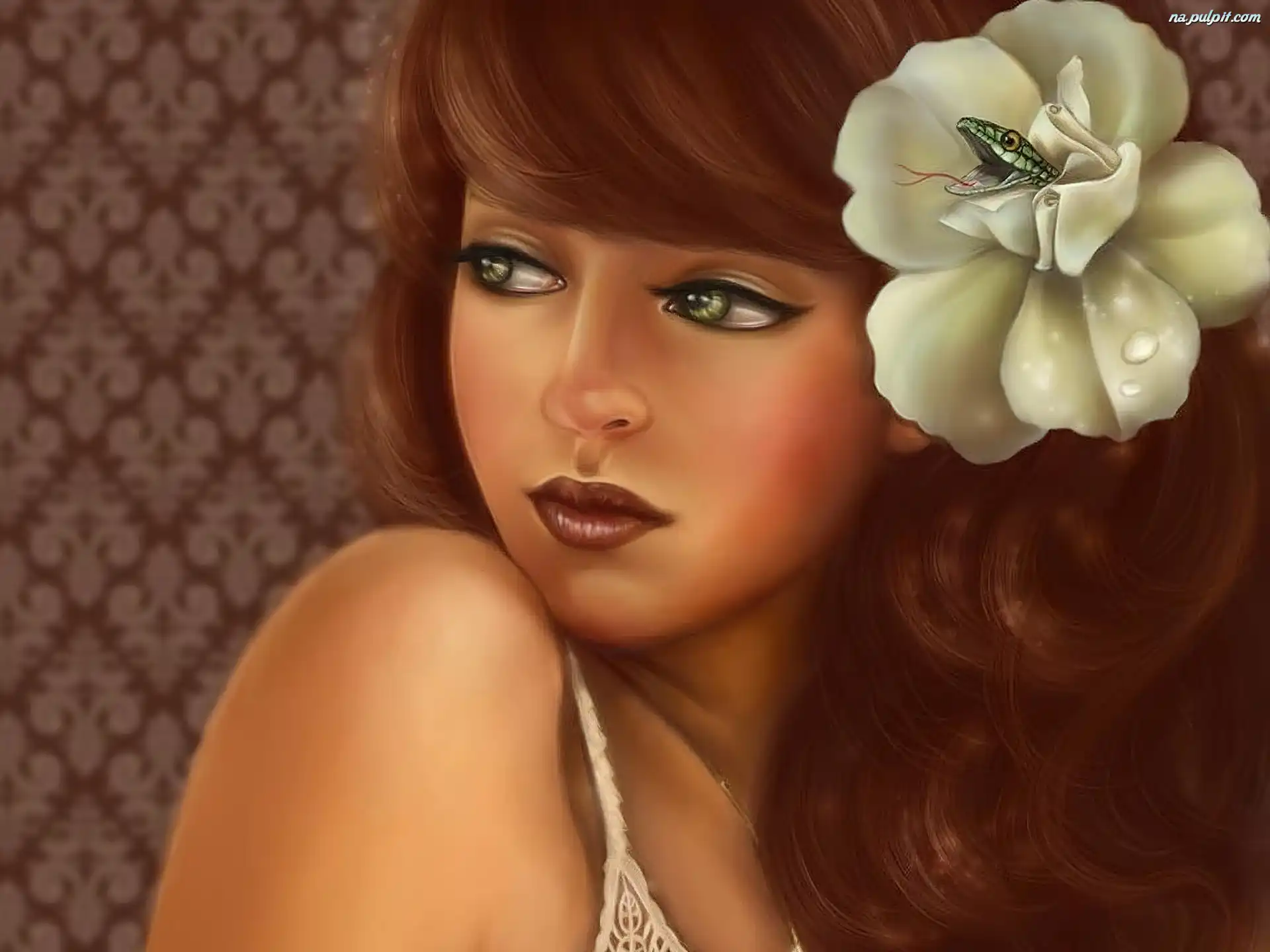 Jaszczurka, Kobieta, Kwiat Na Pulpit