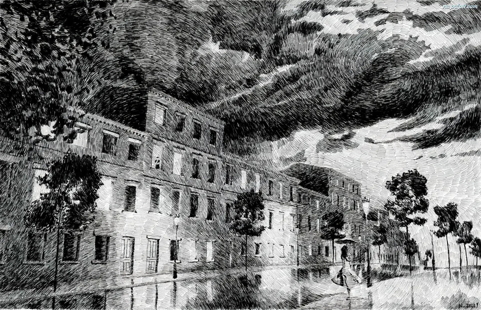 Kobieta, Budynek, Nicolas Jolly, Drzewa Na Pulpit