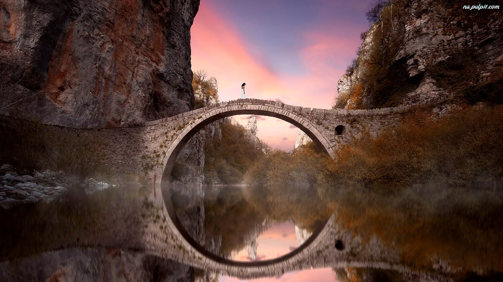 Kobieta, Skały, Most, Kamienny, Jezioro Na Pulpit