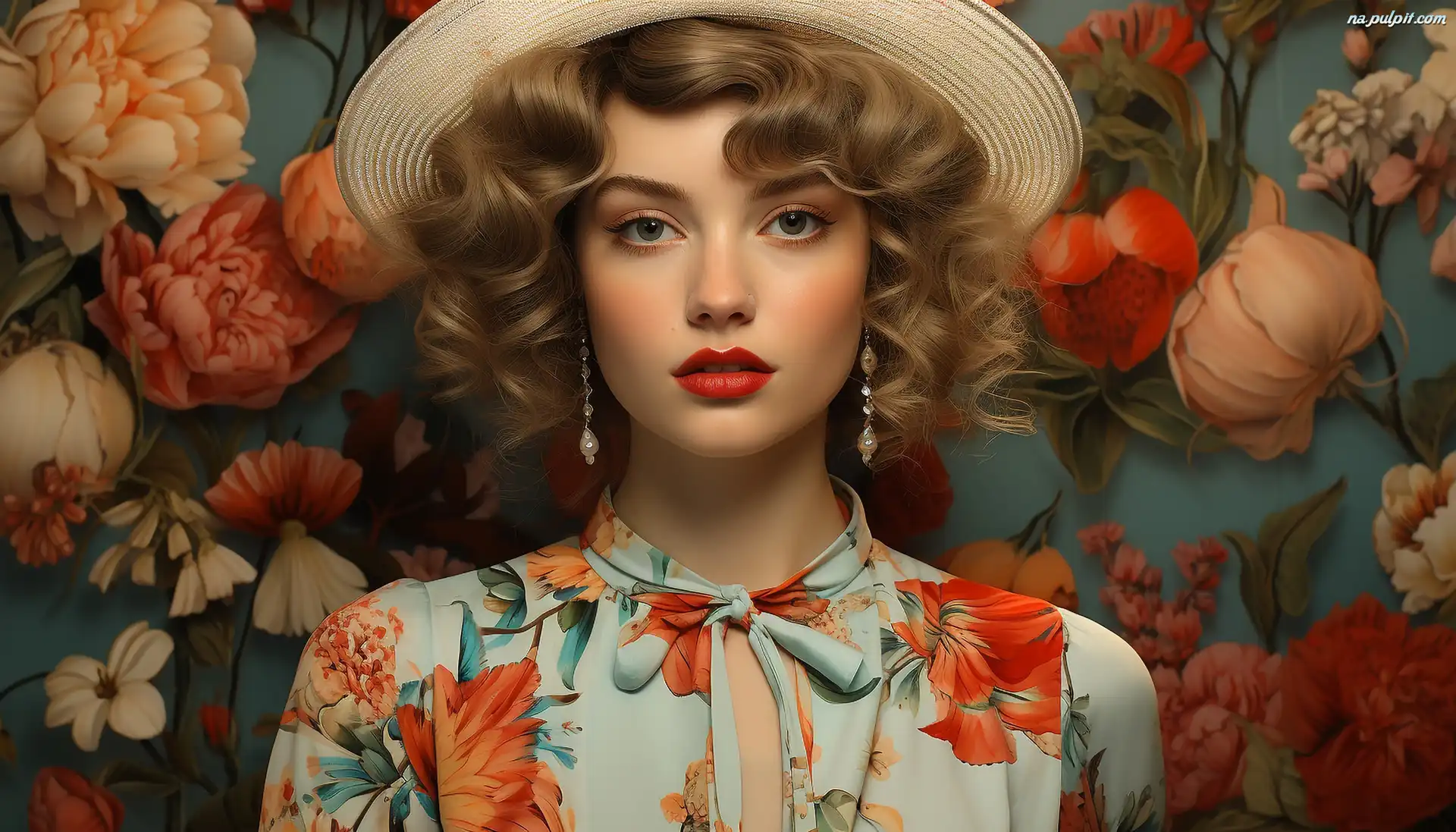 Kwiaty, Kobieta, Kolczyki, Grafika, Kapelusz Na Pulpit