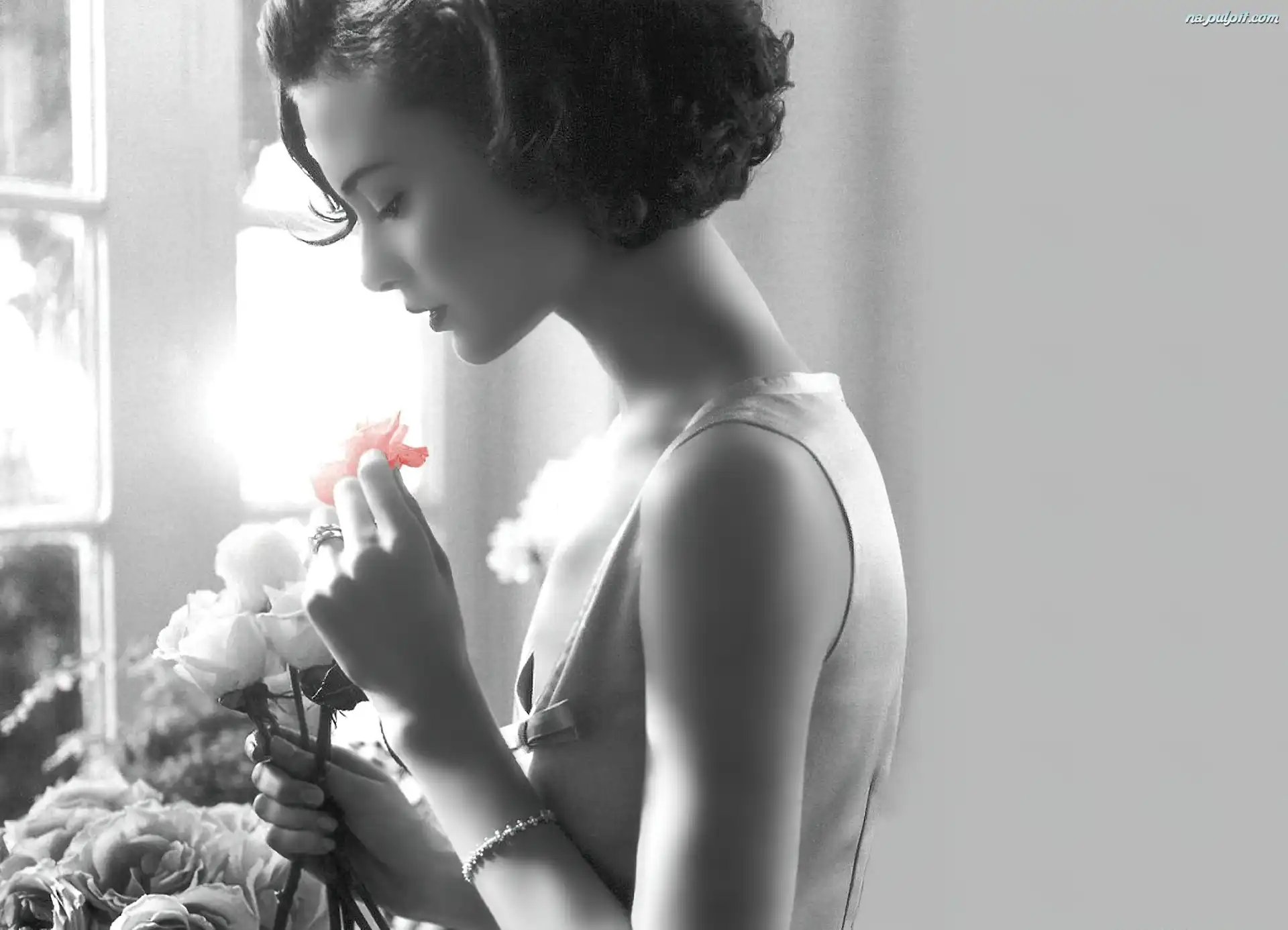 Kwiatek, Kobieta, Czerwony Na Pulpit