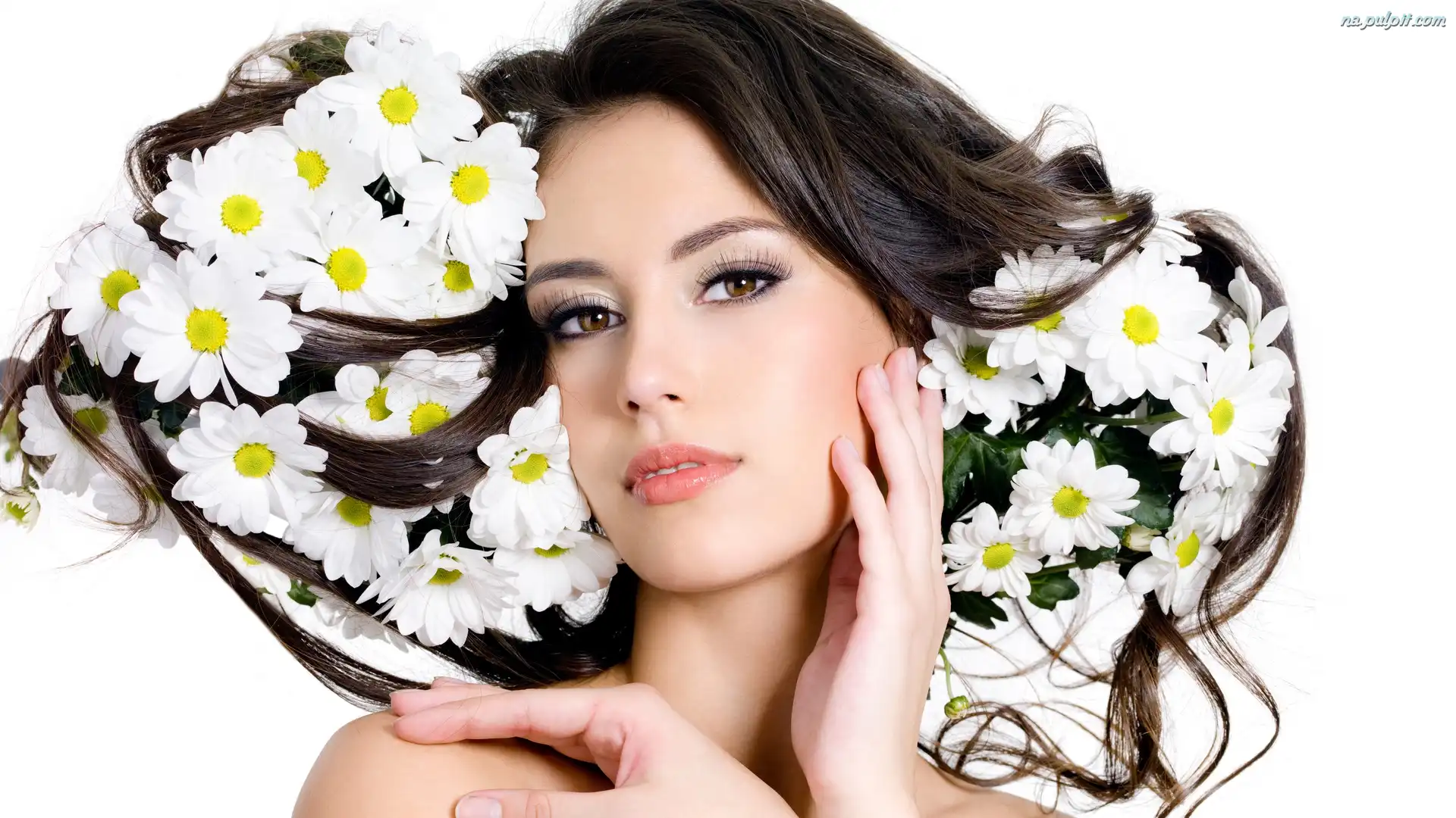 Kwiatki , Kobieta, Makijaż Na Pulpit