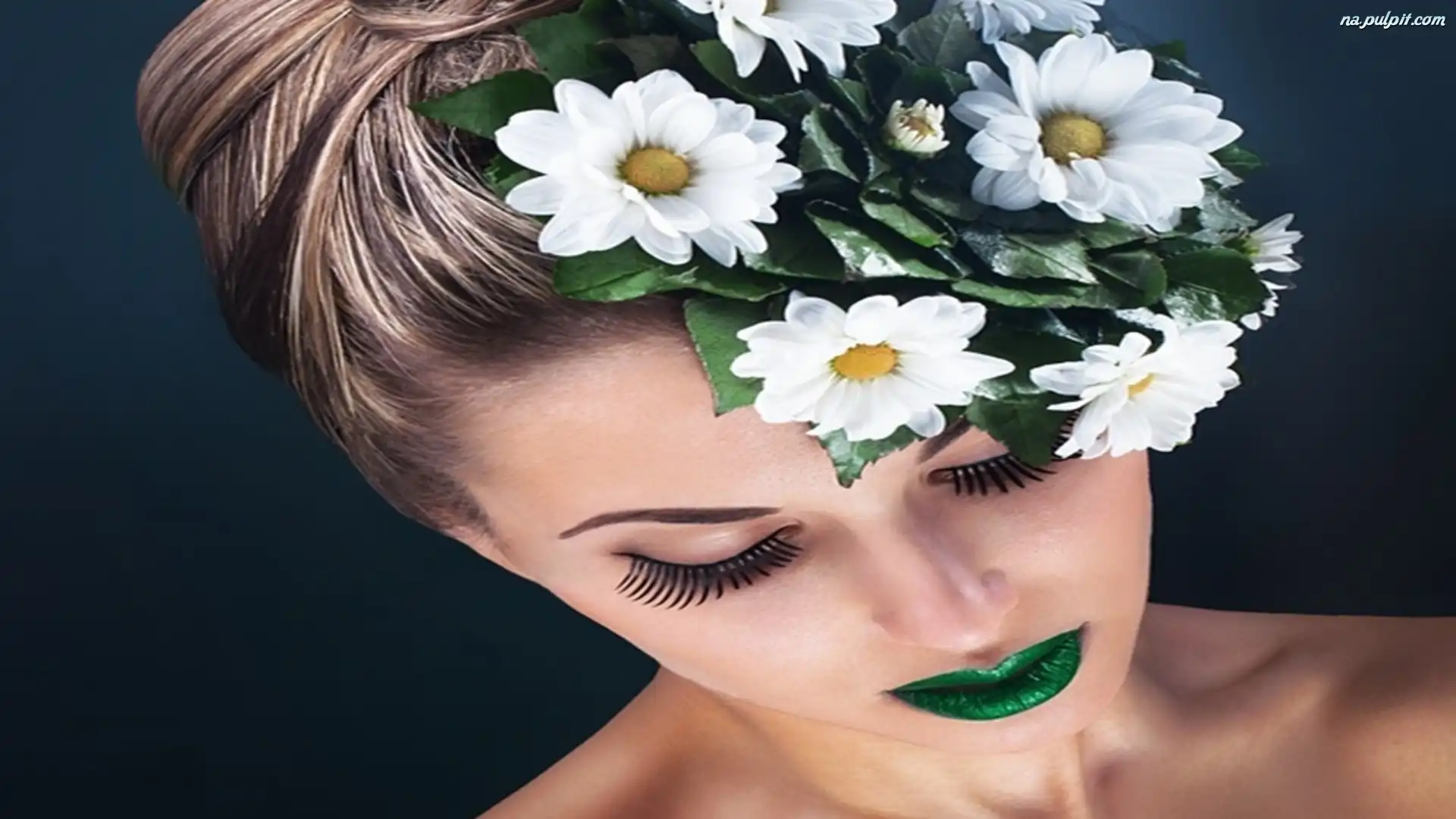 Kwiatki, Kobieta, Makijaż Na Pulpit