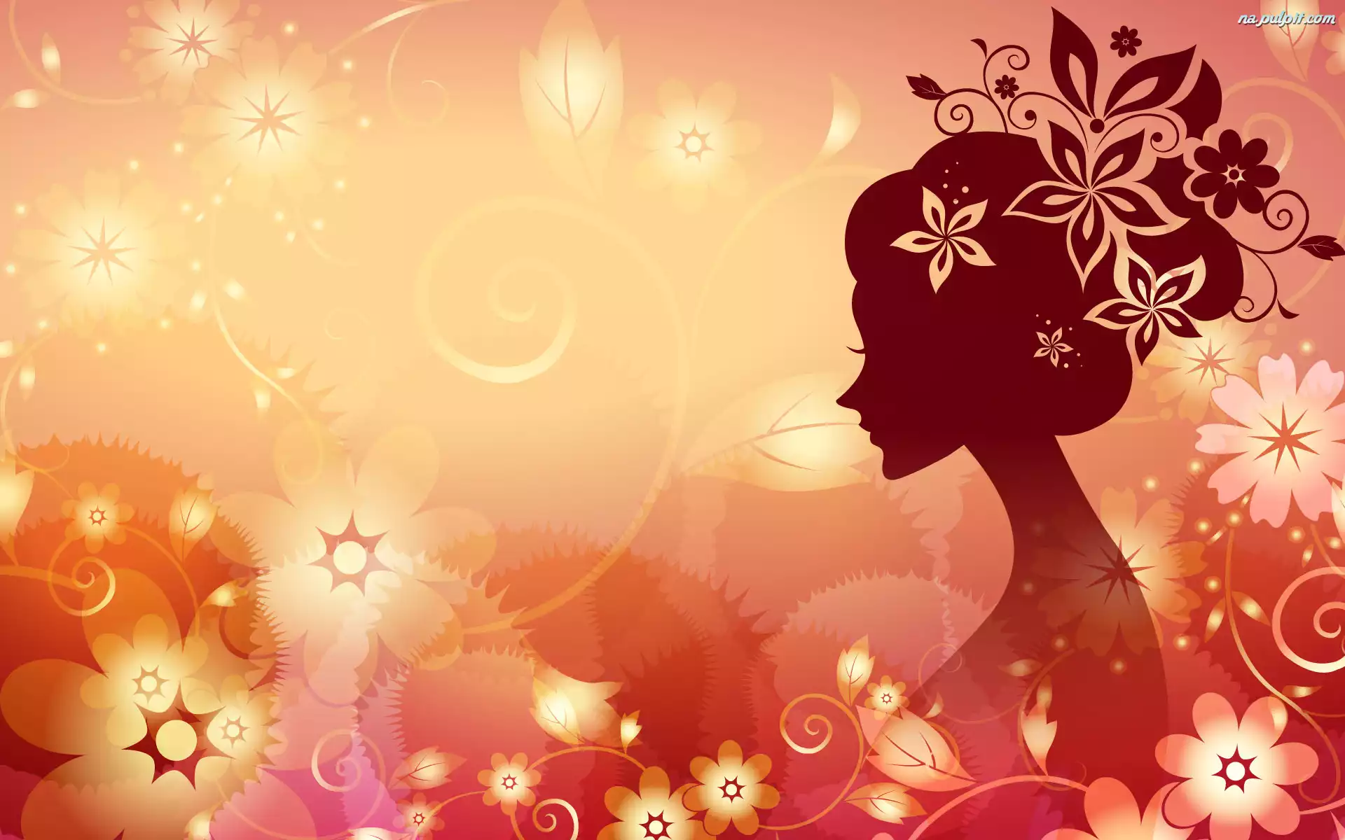 Pomarańczowe, Kobieta, Kwiaty, Tło, 2D
