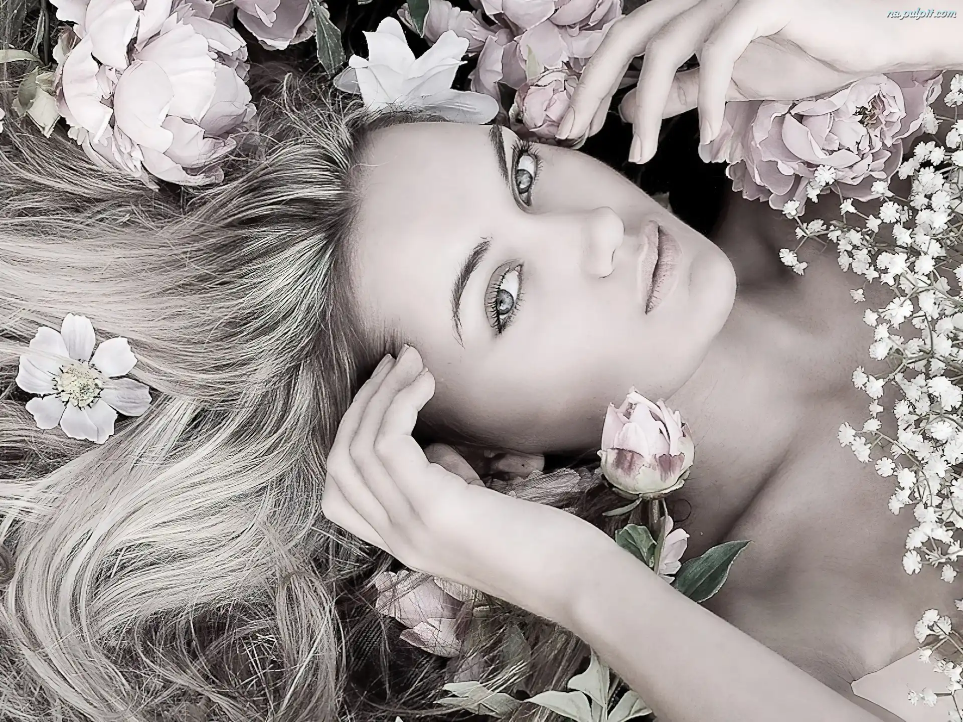 Kwiaty, Kobieta, Dłoń Na Pulpit