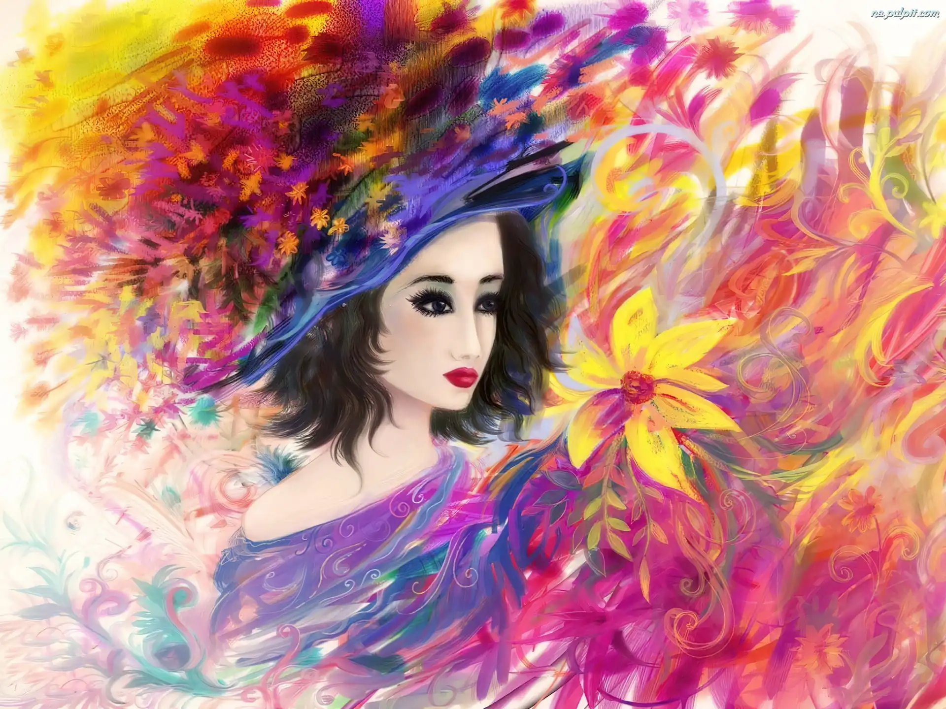 Kwiaty, Kobieta, Kapelusz