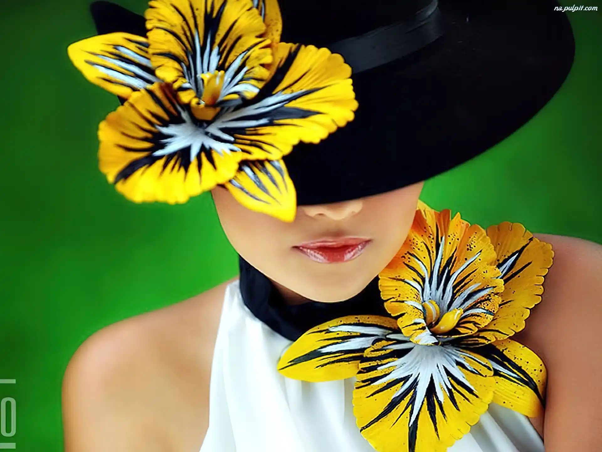 Kwiaty, Kobieta, Kapelusz Na Pulpit