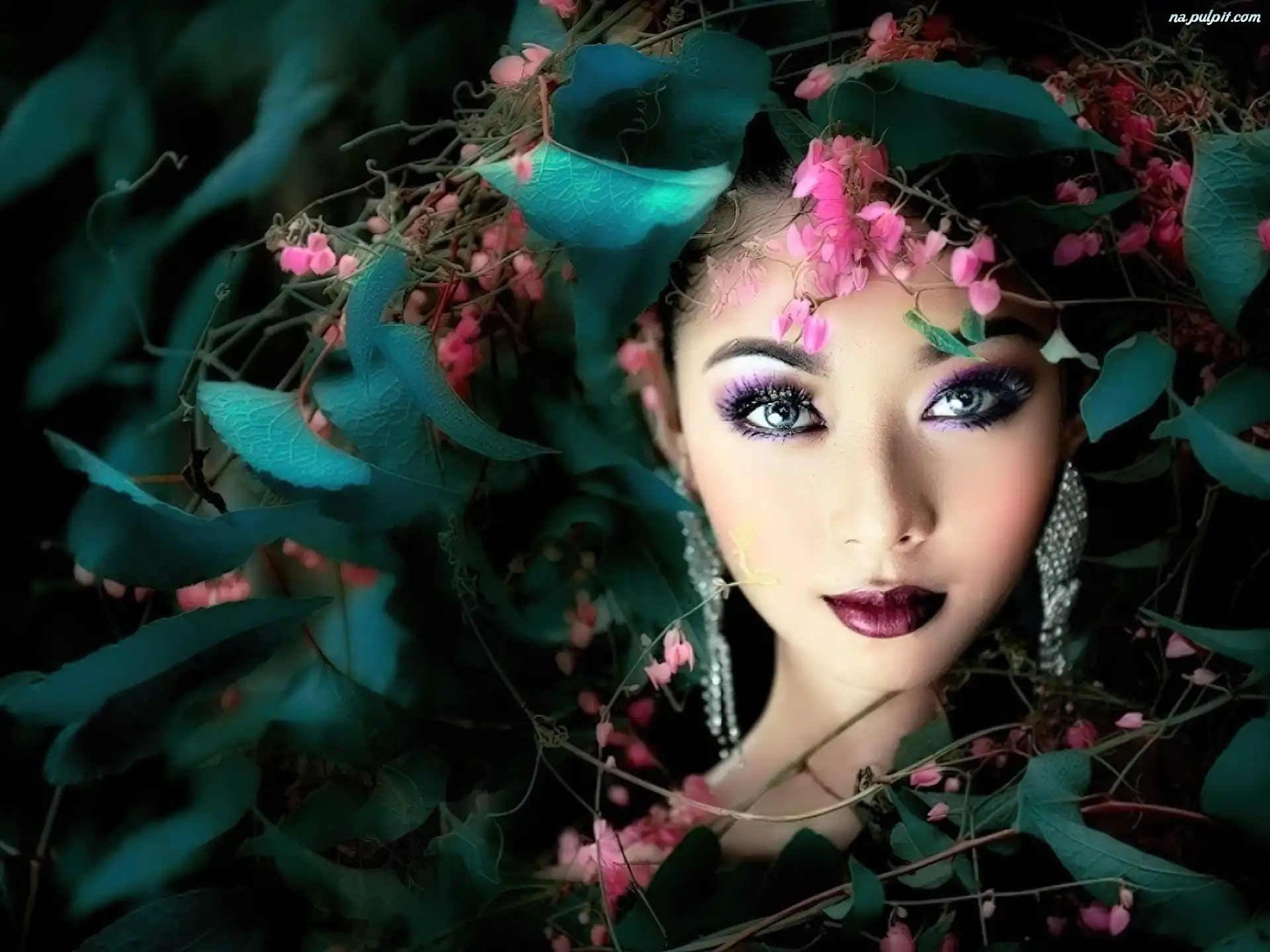 Kwiaty, Kobieta, Makijaż