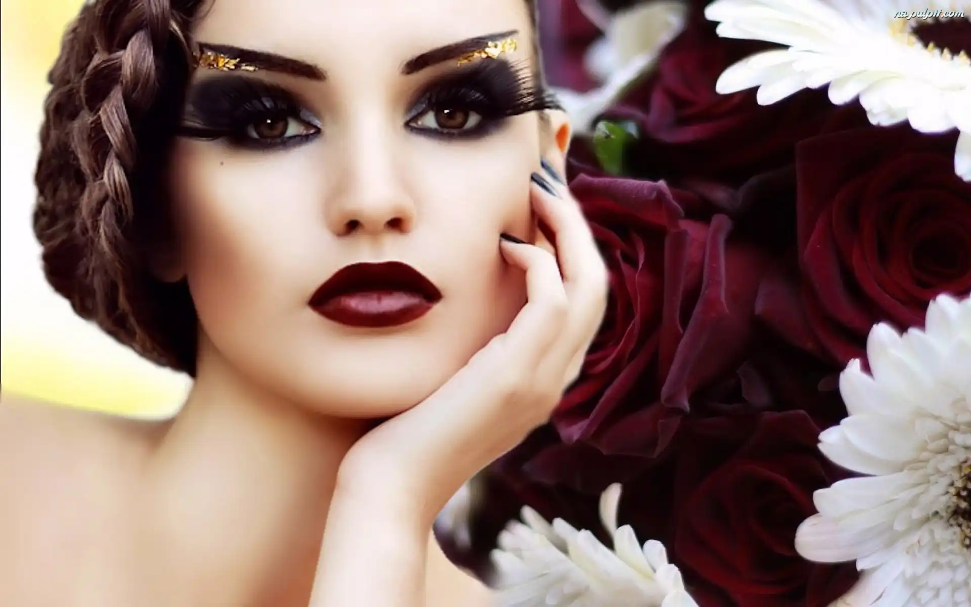 Kwiaty, Kobieta, Makijaż Na Pulpit