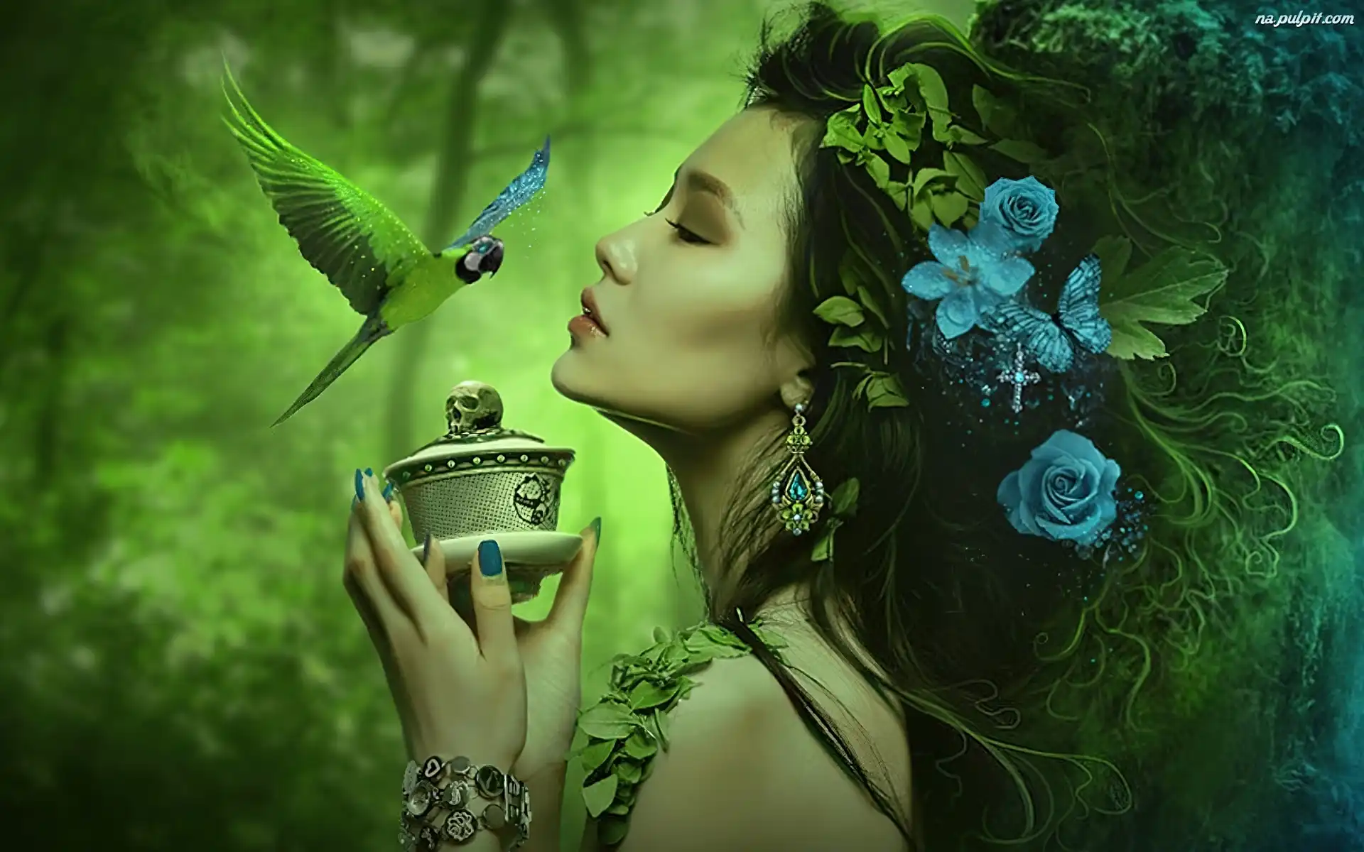 Kwiaty , Kobieta, Papużka Na Pulpit