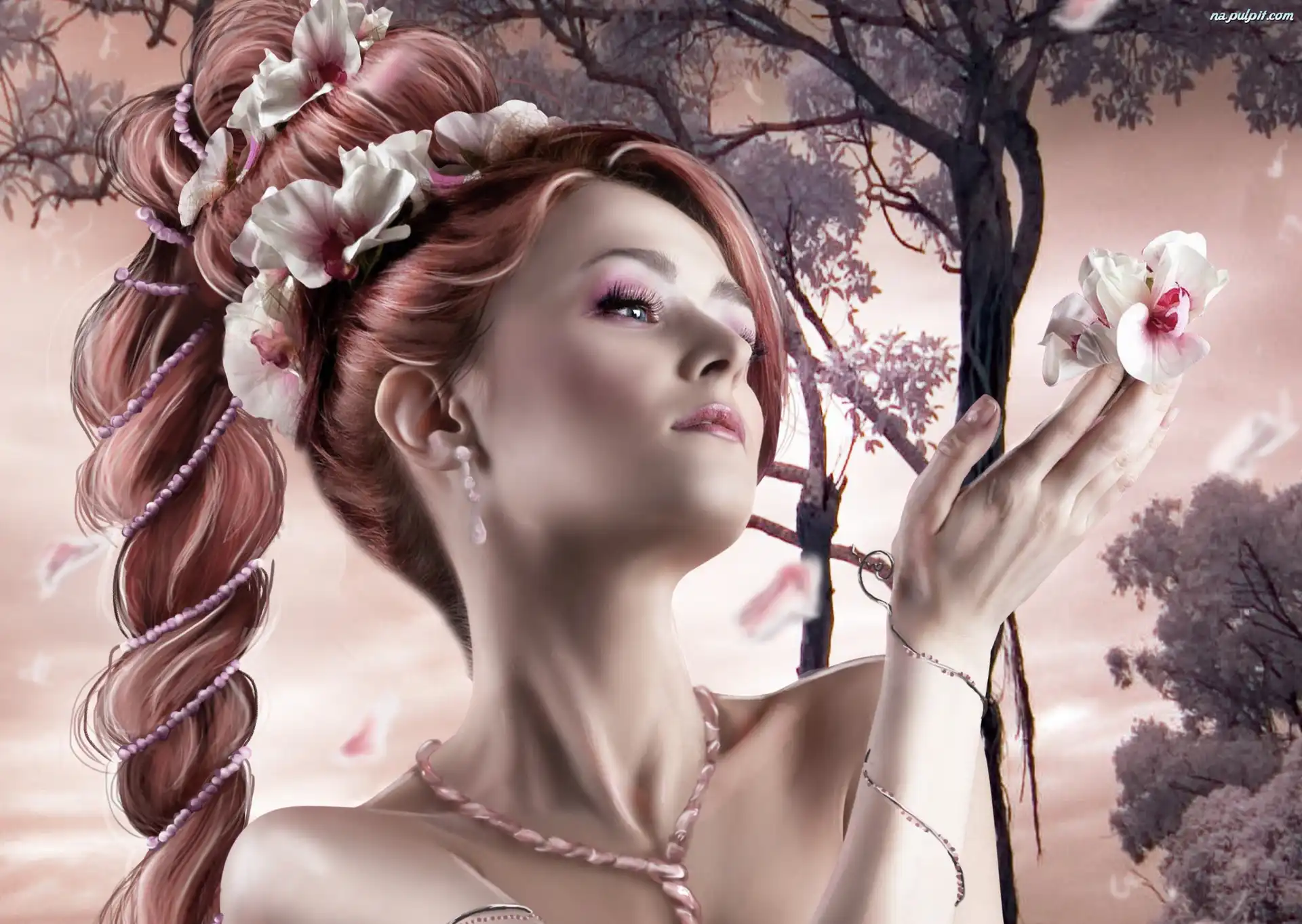 Kwiaty, Kobieta, Warkocz Na Pulpit