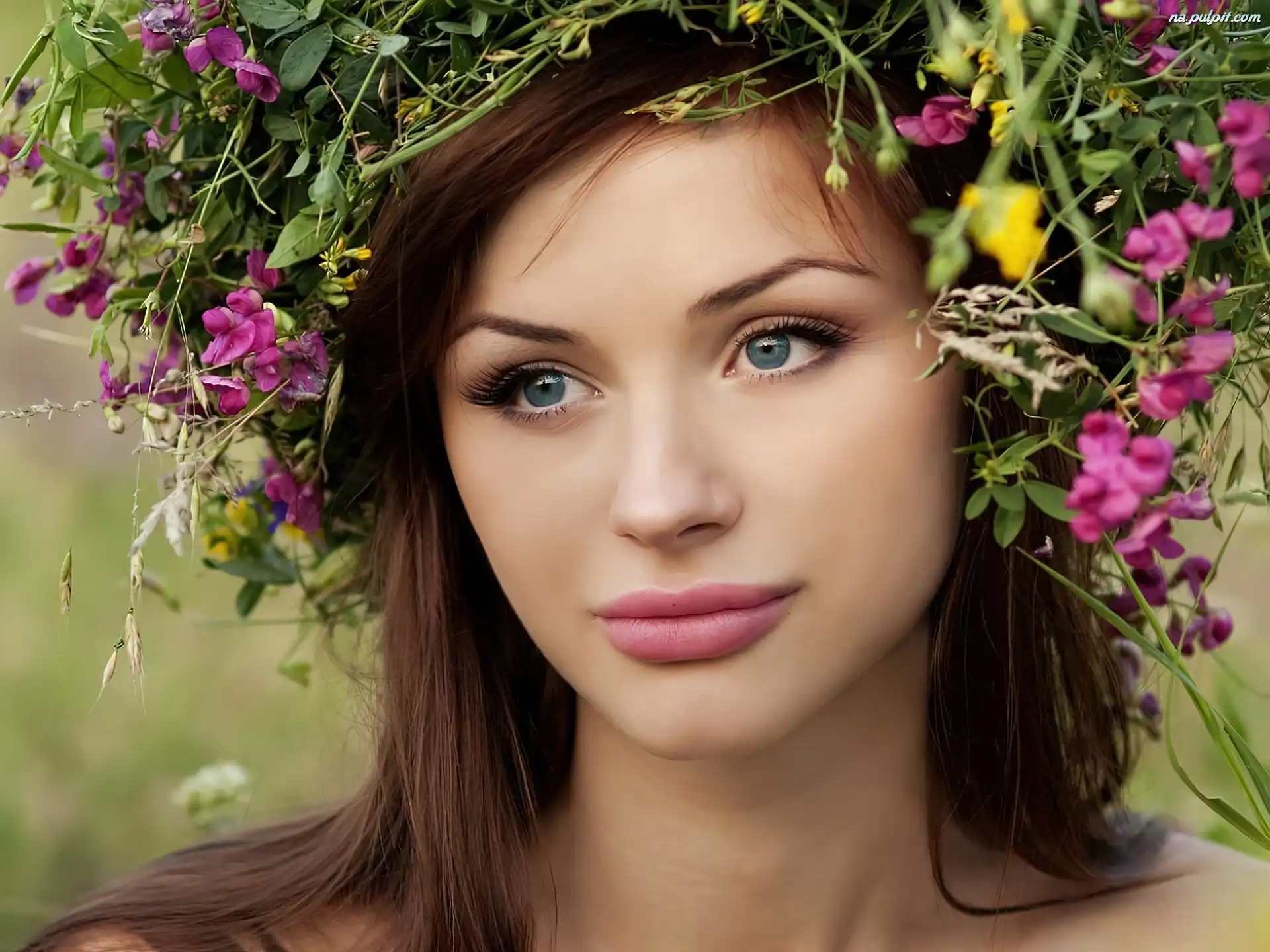 Kwiaty, Kobieta, Wianek