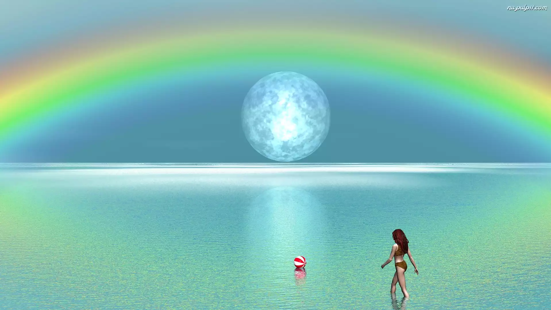 Kobieta, Tęcza, Morze, Lato, 2D Na Pulpit